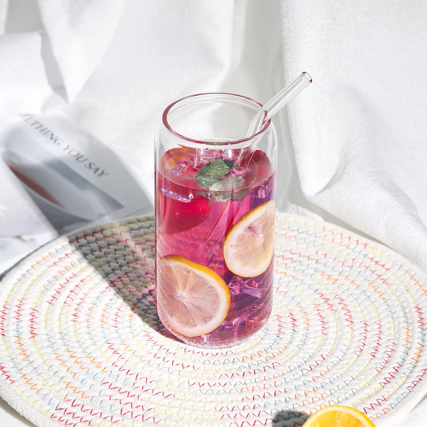 WHAT YOU WILL GET: Our glass cup set includes 1pc 16oz beer glasses cup, 1pc bamboo lid, 1pc reusable glass straw.
