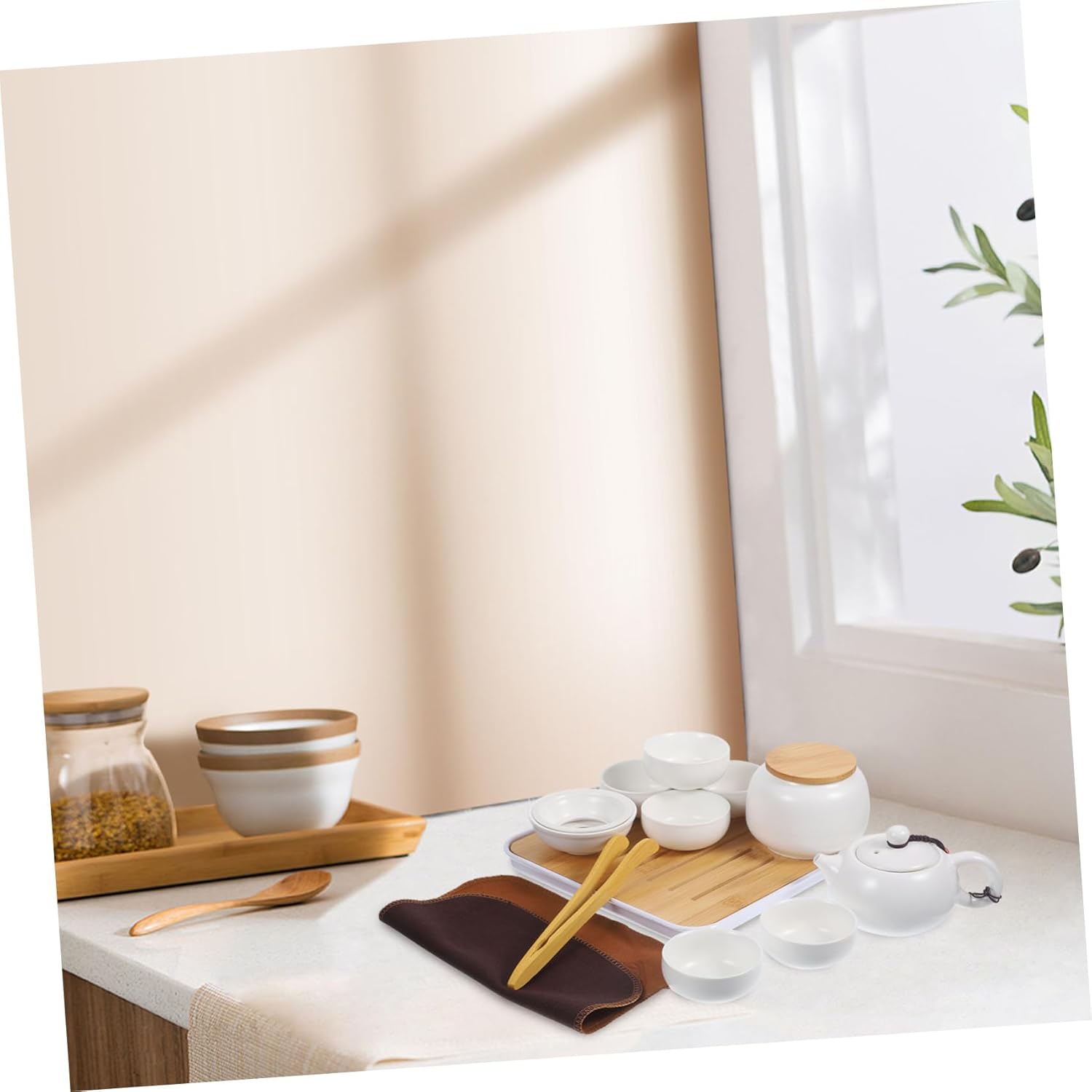 Packaging List – 1 X Storage Bag, 1 X Tray, 1 X Teapot, 1 X Tea Jar, 6 X Tea Cup, 1 X Bamboo Clip, 1 X Cleaning Cloth, The Detailed size, please check the description.