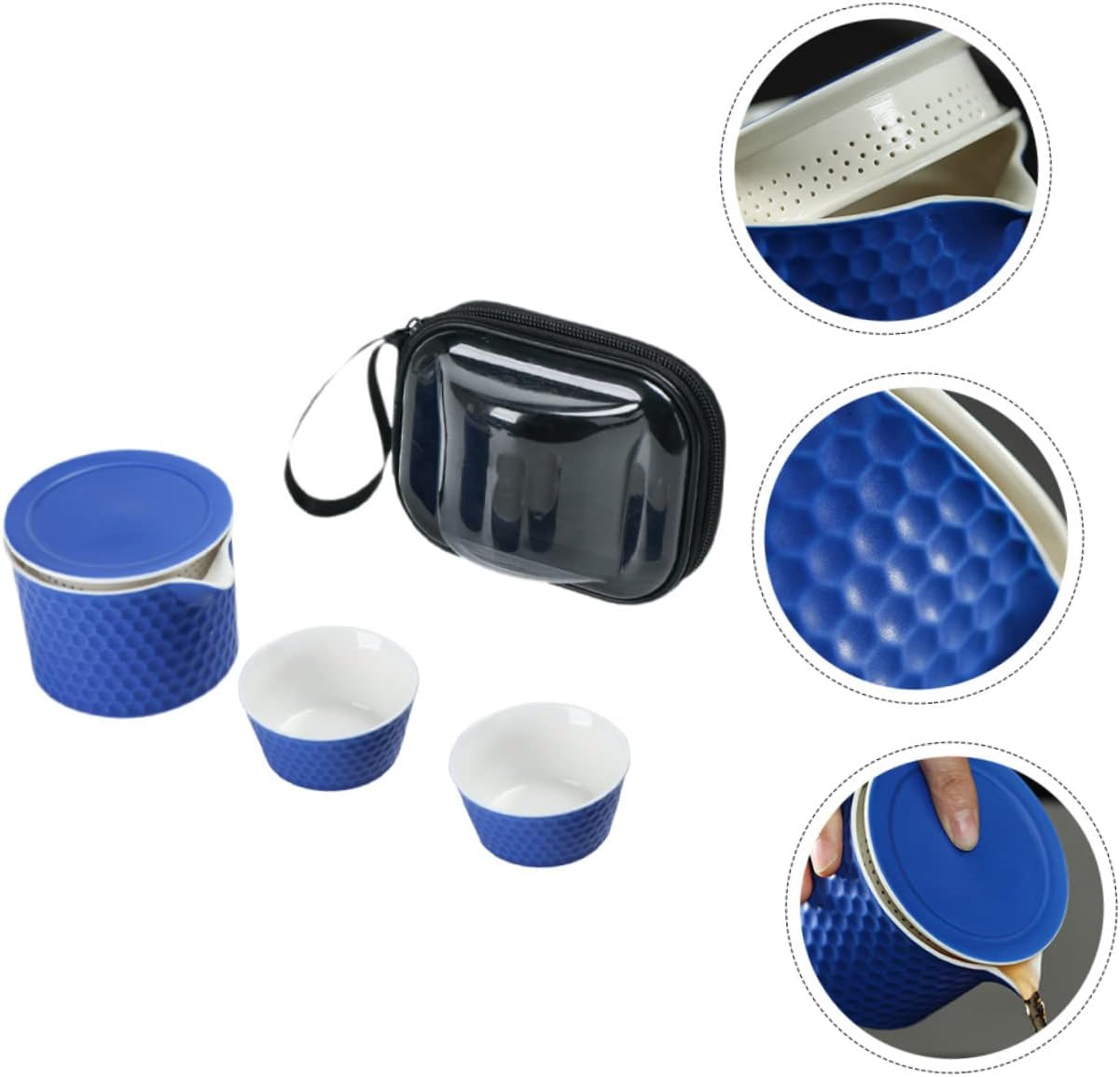 1 Set Set Portable Travel Tea Set Pottery Tea Cups Vintage Tea Cups Mini Tea Cups Chinese Tea Brewing Kit Travel Tea Kit Outdoor Cups Cat Tea Infuser Chinese Tea Cups Ceramics Blue