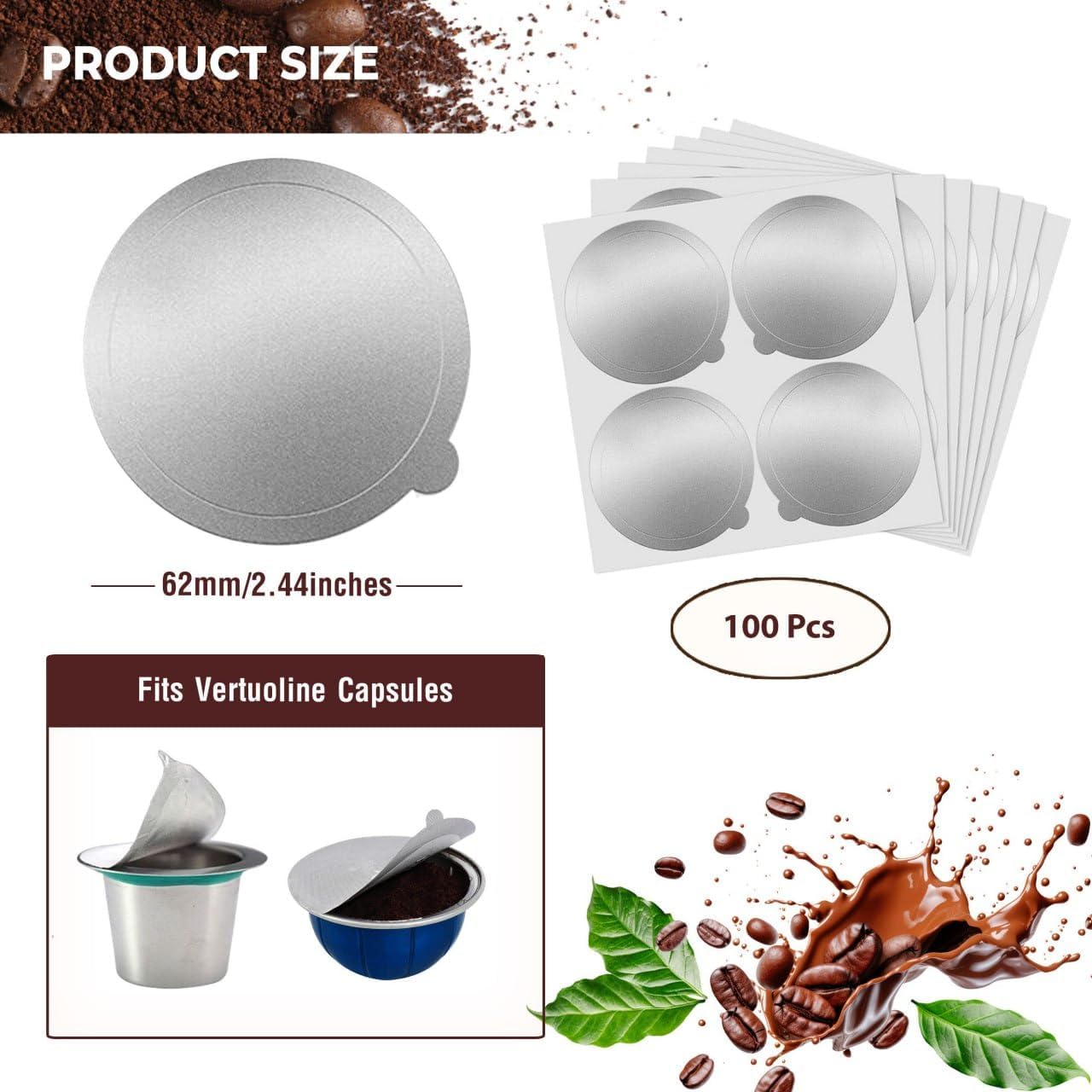(100 PCS) Aluminum Foil Lids for Reusing Nespresso Capsules – Compatible with Nespresso Vertuoline and Vertuo – Reusable Coffee Pod Covers