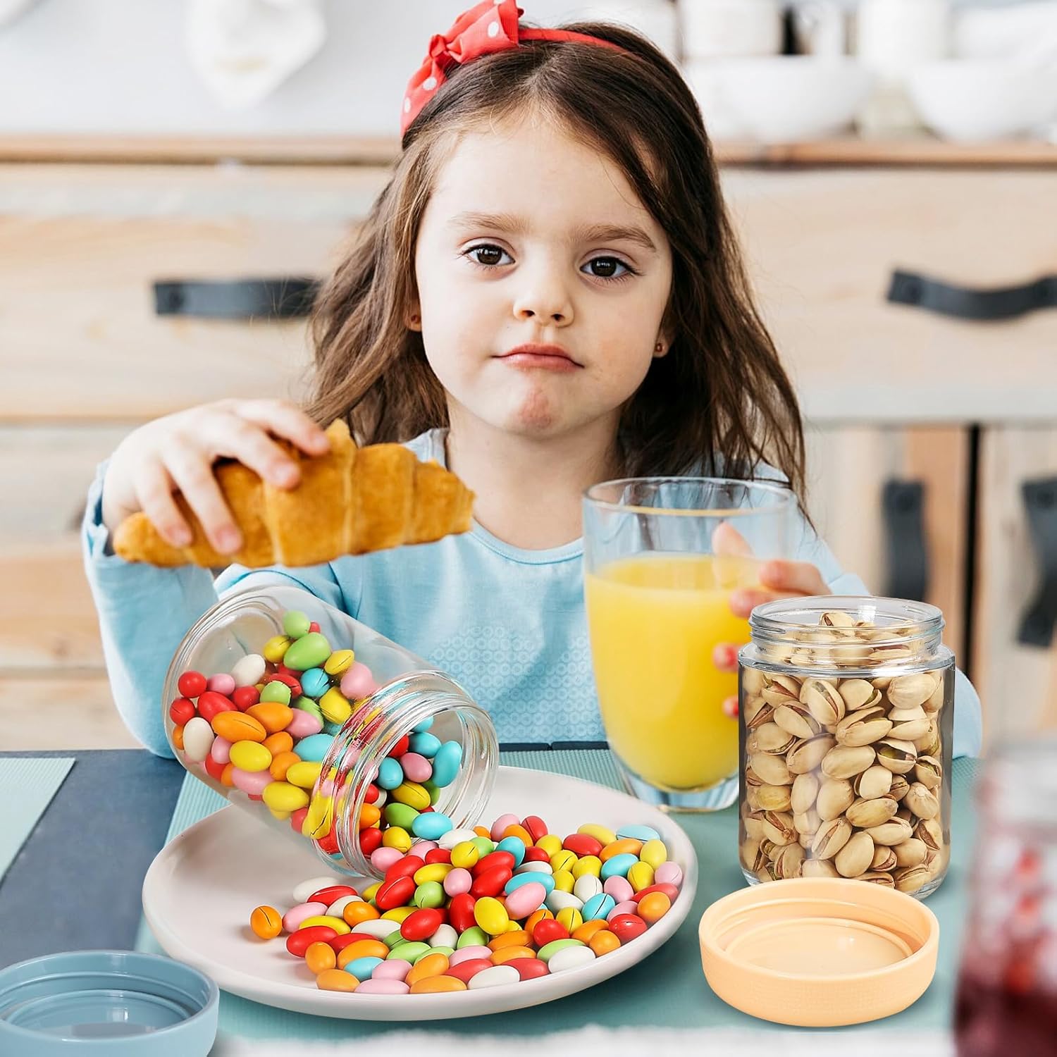 【Perfect for Various Occasions】Our glass jar containers have wide opening with a good seal. Super easy to wash. The lids with the pop of color lighten up the decor. Ideal for displaying, presenting, and storing everything as well as DIY projects.