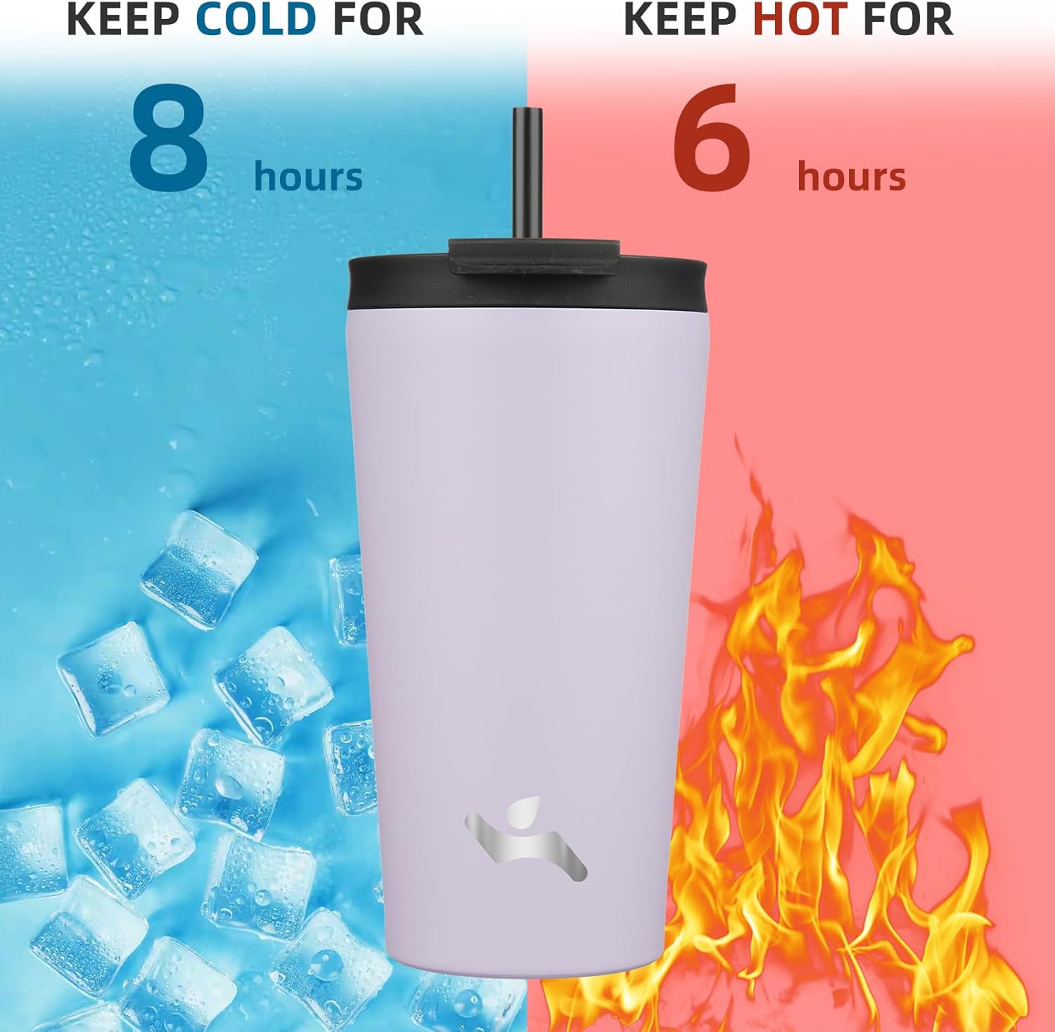 The tumbler with straw lid is made of premium 18/8 stainless steel, double wall vacuum insulation keeps drinks cold for up to 8 hours and hot for up to 6 hours