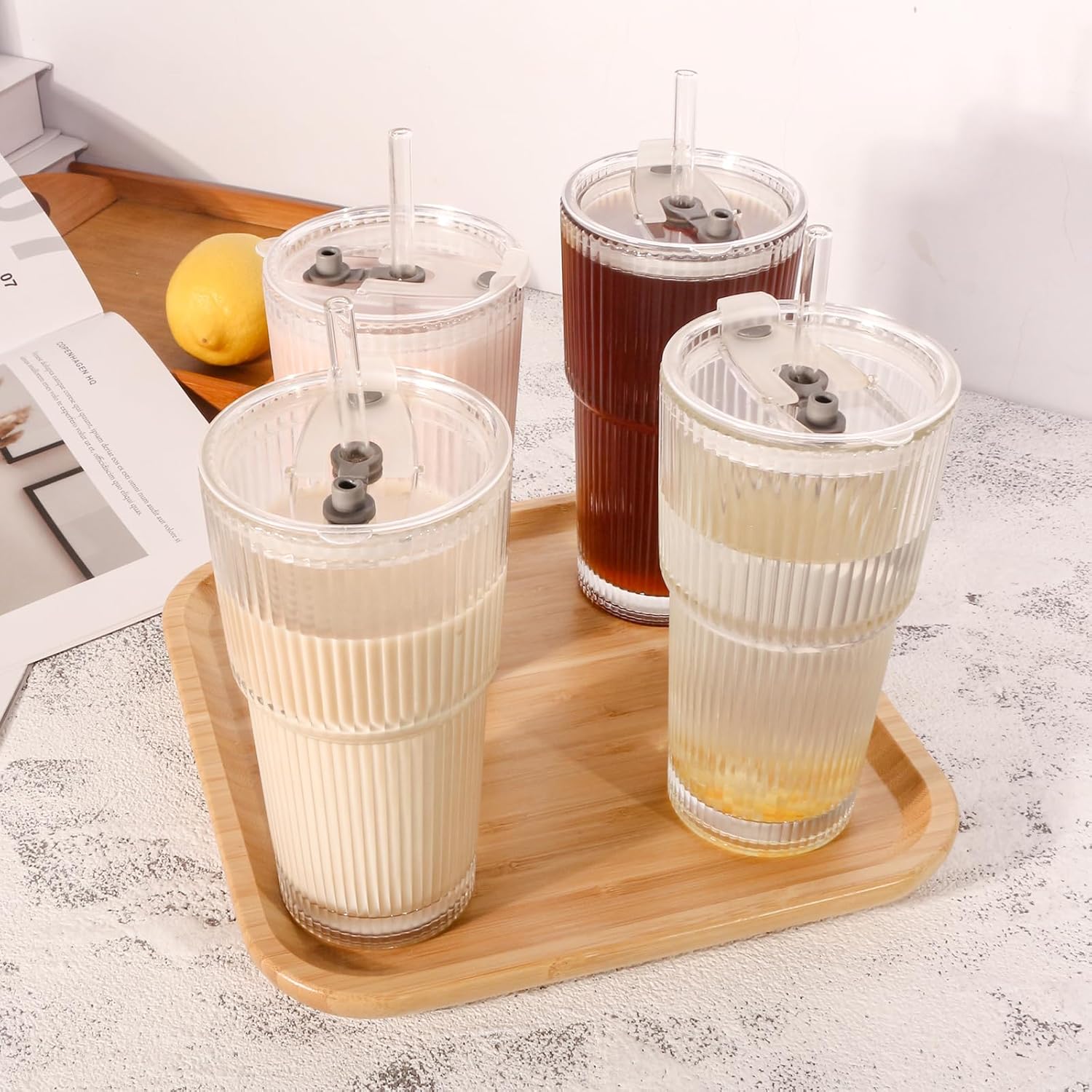 I absolutely love this ribbed drinking glass set! The quality is excellentâthe glass feels sturdy yet elegant, and the ribbed texture adds a stylish touch that makes every drink feel a little fancier. The included bamboo lids fit snugly, preventing spills, and the glass straws are a great eco-friendly bonus.I’ve used them for everything from iced coffee to smoothies, and they hold up perfectly. Cleaning is also a breeze, especially since theyâre dishwasher safe. If you’re looking for an aesthetic and functional glass set, this is a must-buy! Highly recommend!