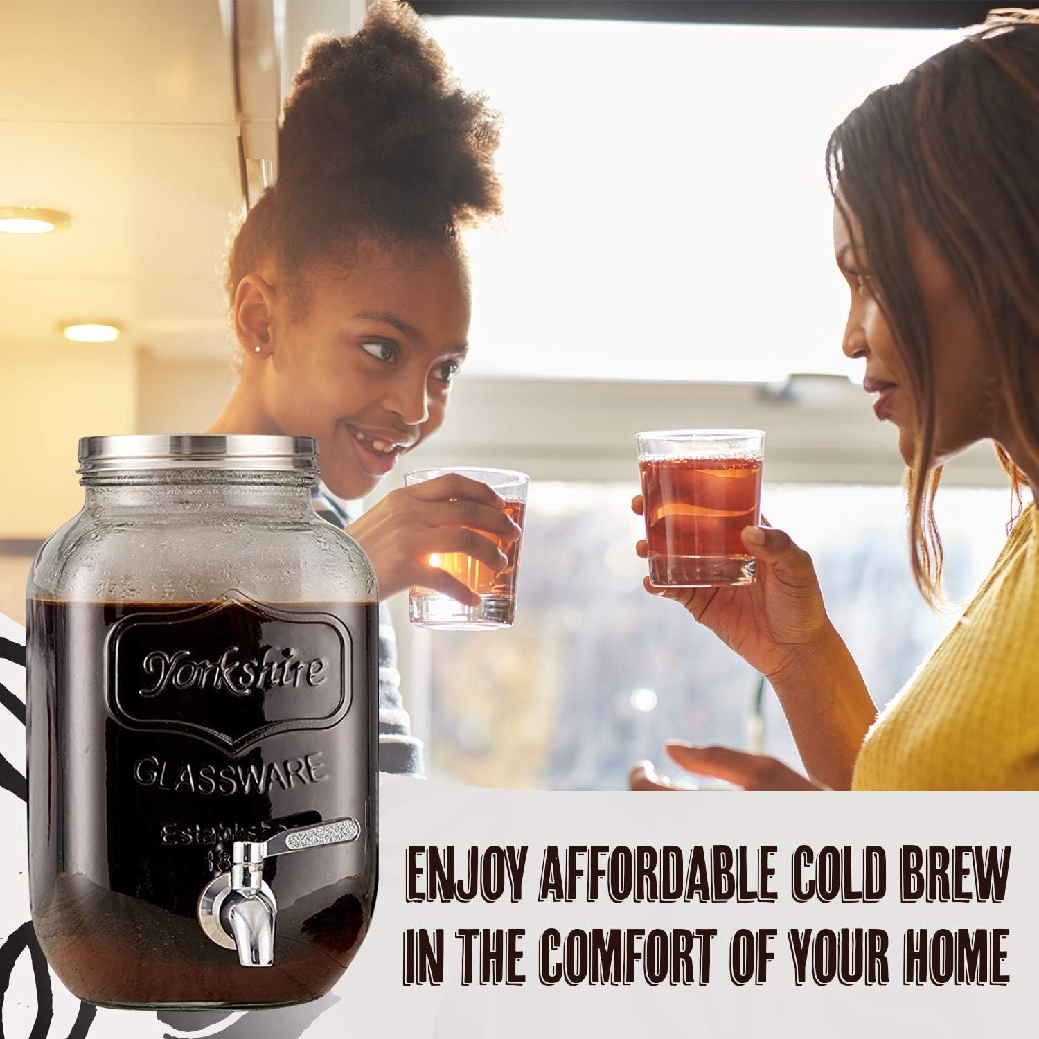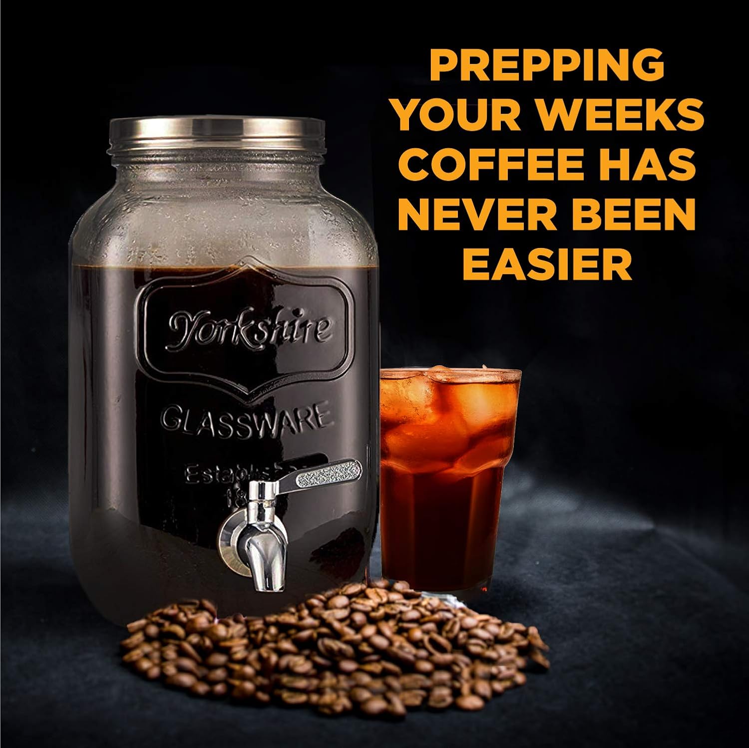 COLD BREW COFFEE TAP: No need to brew small batches of cold brew coffee, when you can have approx 32 servings on hand through your gallon batch dispenser (DO NOT LIFT JAR BY GRASPING LID)