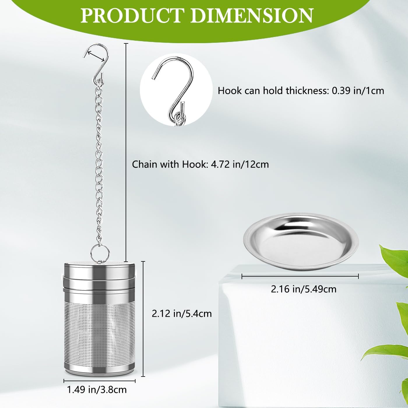 2 Pack Tea Infuser, Tea Filter Tea Strainers for Loose Tea, Stainless Steel Extra Fine Mesh Loose Leaf Tea Steeper with Extended Chain Hook, for Tea, Spices & Seasonings, Silver
