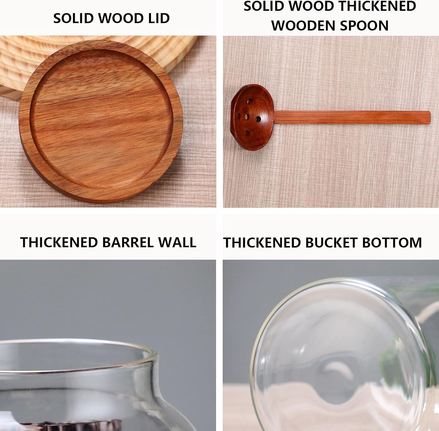 Natural Acacia lid with safe rubber ring.(The texture and color of the lid are not exactly the same)