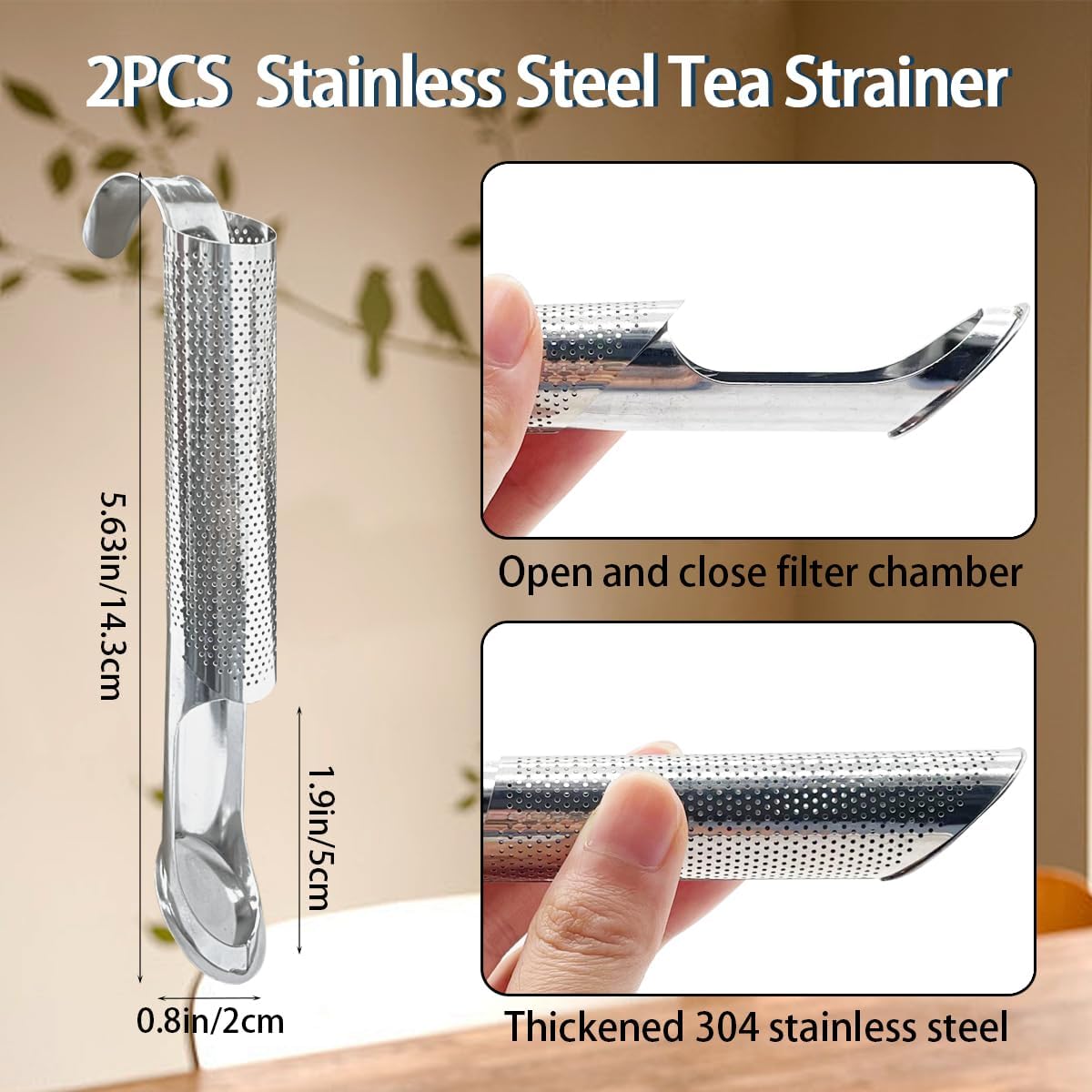 2 PCS Stainless Steel Tea Diffuser Tea Infuser,Tea Pipe with Hanging Hook Handle,Fine Holes Tea Interval Diffuser for Loose Tea Leaf Coffee Herbs Spices
