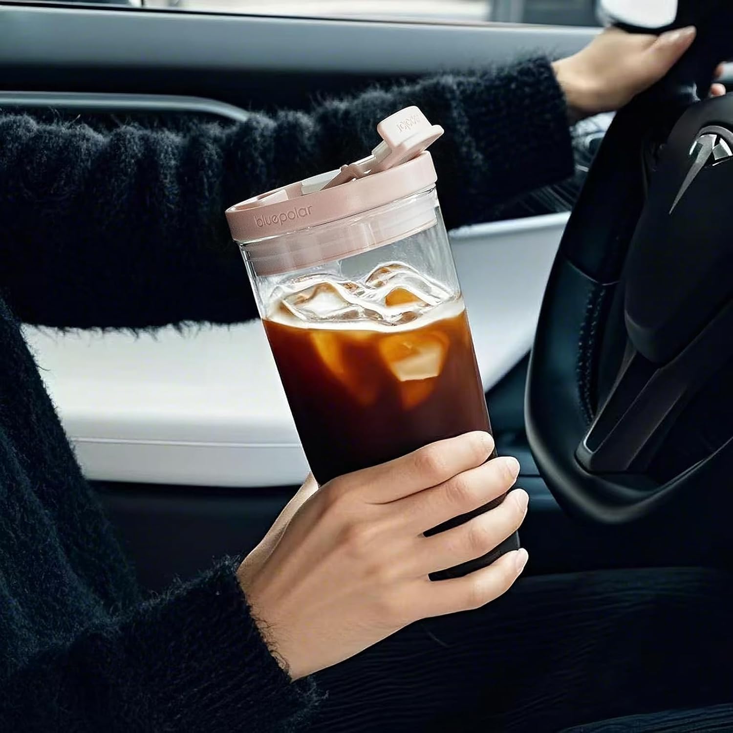 And iced coffee tumbler can be easily reached by hand.