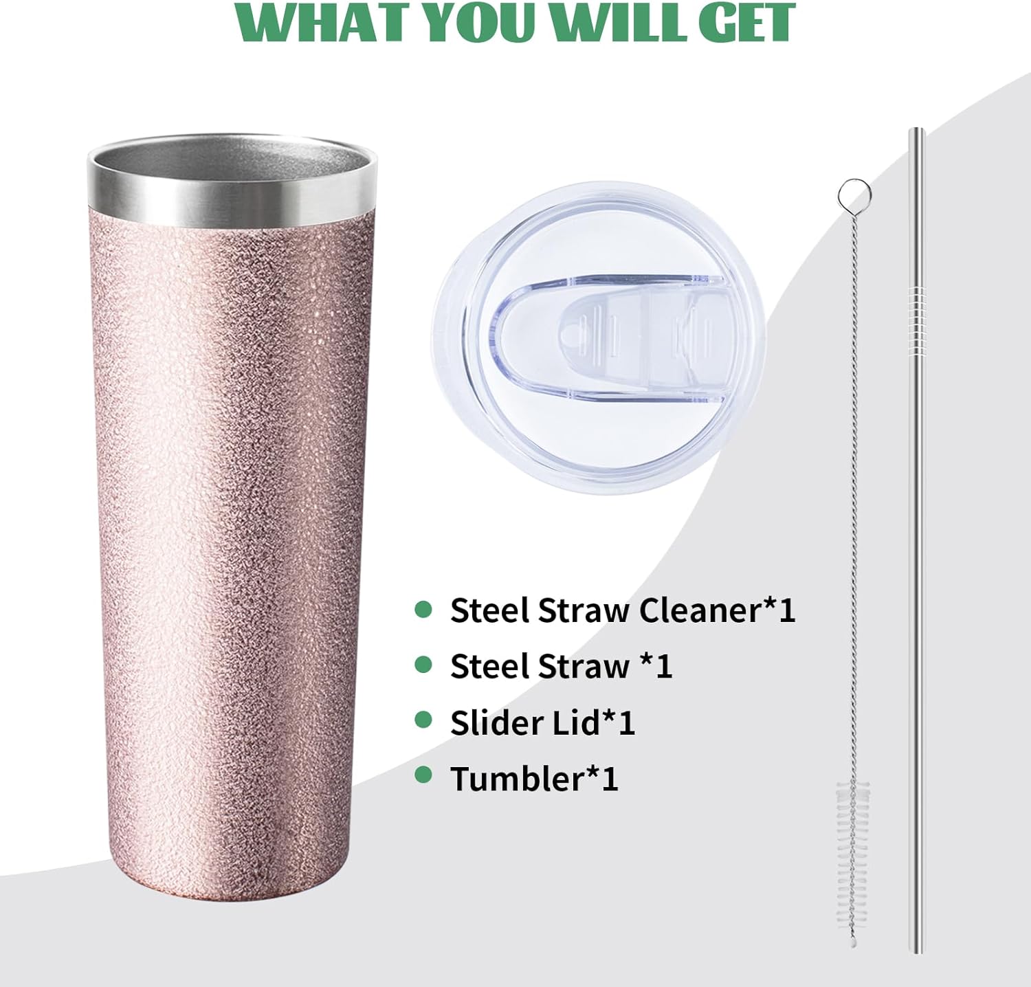 🥂【 】1*Stainless steel tumbler+1*sliding Lid+1*stainless steel straw+1*straw brush.We provide high quality after sale service.If you are not positively thrilled with our wine tumblers, please contact us and we will make every effort to solve your problem.