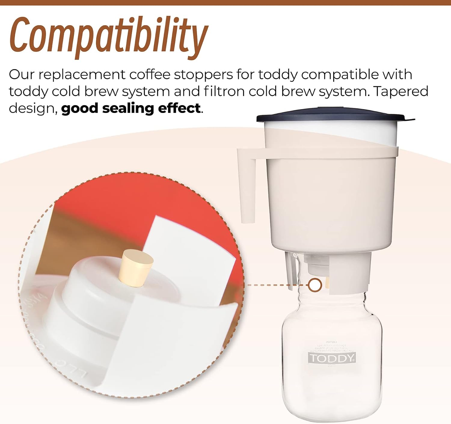 【Compatibility】Our reusable coffee filters and stoppers are compatible with the toddy cold brew system and fit snugly on the bottom of the toddy cold brew system. Suitable for mason jars, carafes, jugs, pitchers etc. And coffee plugs works with the filtron cold brew systems.