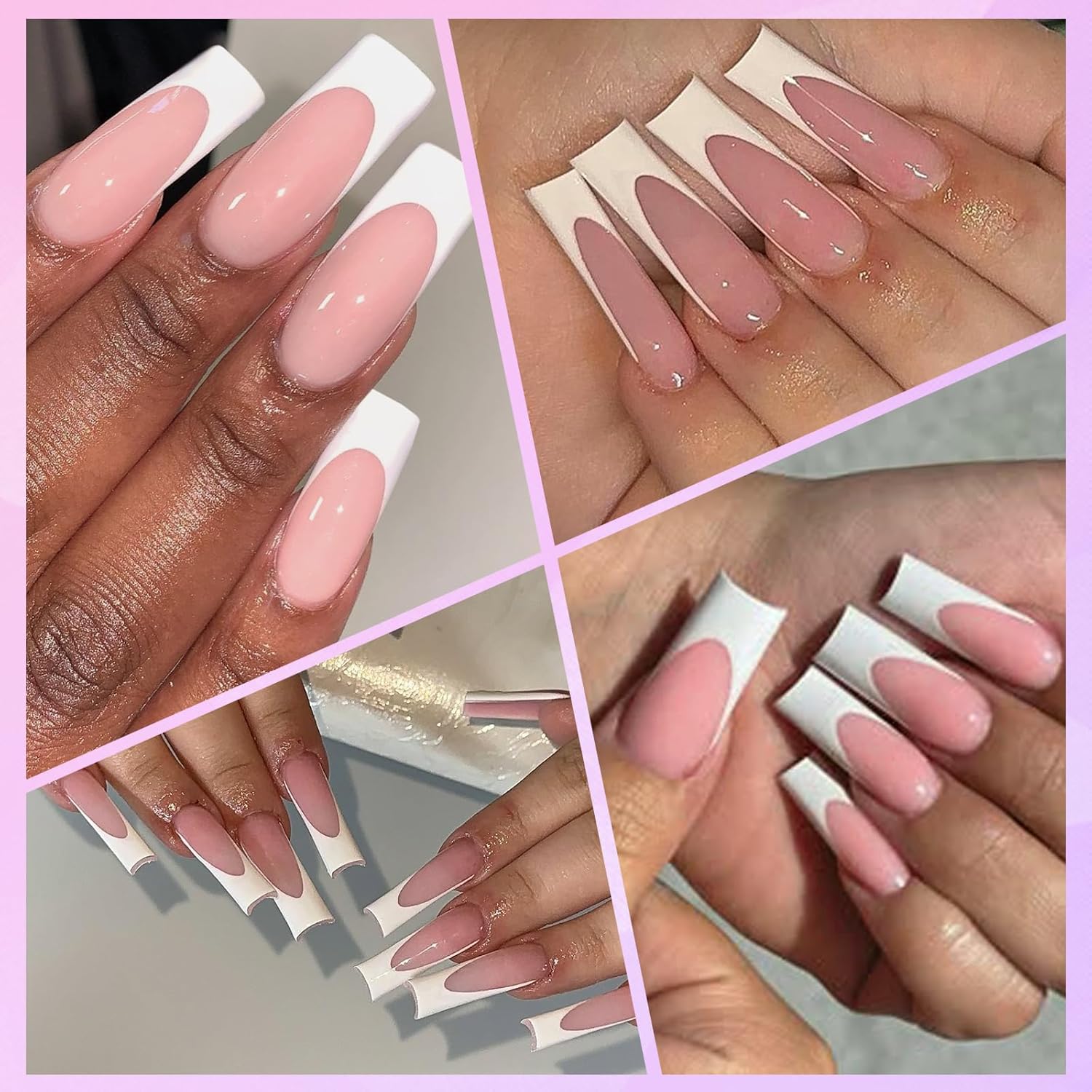 French manicure press on nails square long length: This french nail tips long length made of high quality ABS material, we prioritize quality and durability in our long press on nails square. Our glue on nails long are crafted using premium materials and pre-shaped long fake nails press ons with thin back edge design can seamless fit normal fingernails, acrylic nails press on can fit flat, curved, wide nail bed seamless, natural and comfortable, and with thick top edge, acrylic press on nails long length are resistant to chipping and breakage.