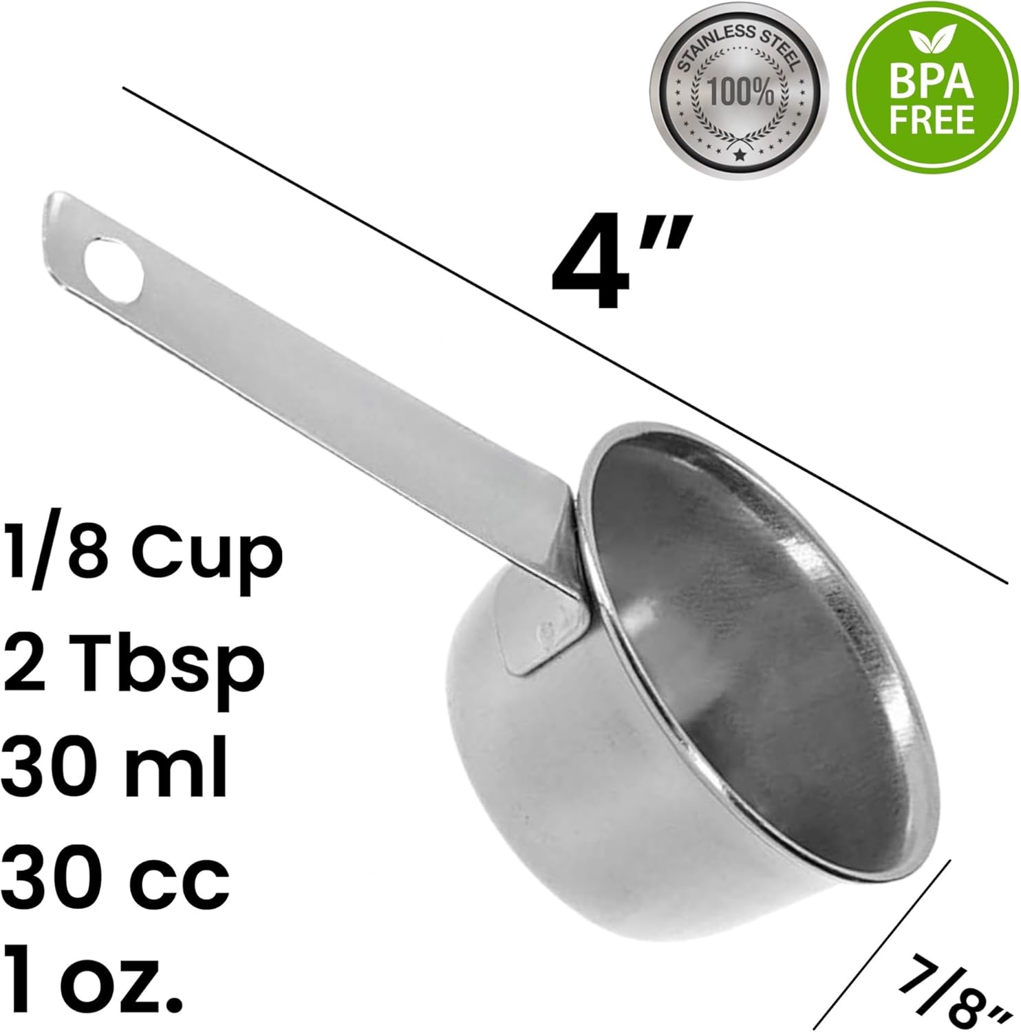11 reviews for 3pc BPA FREE STAINLESS STEEL ALAZCO COFFEE MEASURING SCOOP 1/8 CUP (2 Tbsp | 30 ml | 30 cc | 1 oz) Holiday Baking Cooking Measuring Scoop Spice Herbs Salt Sugar Flour Cocoa Protein Powder Keto Cream