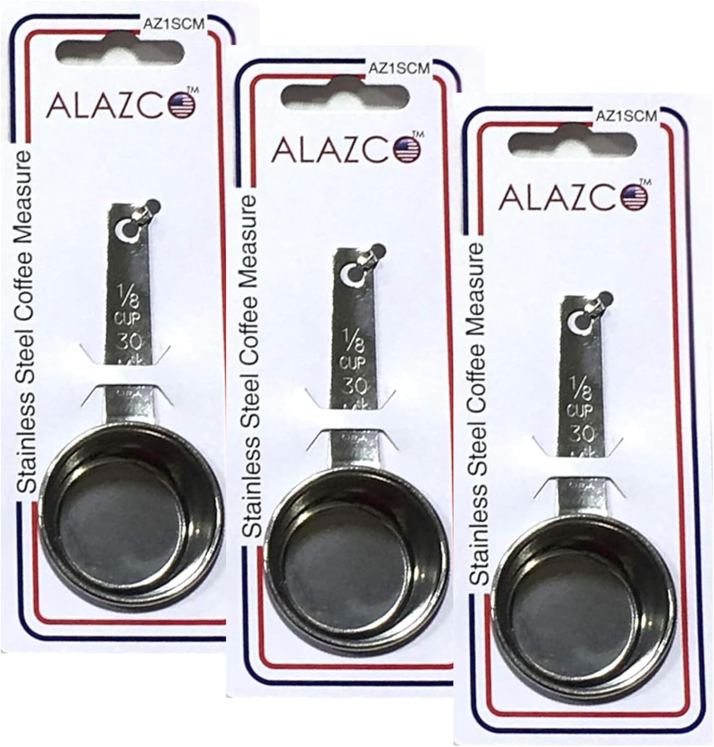 EXCELLENT QUALITY: 3 Excellent Quality Stainless Steel Coffee measure by ALAZCO. Etched markings won’t fade and provide accurate measurements every time for both dry and liquid ingredients.
