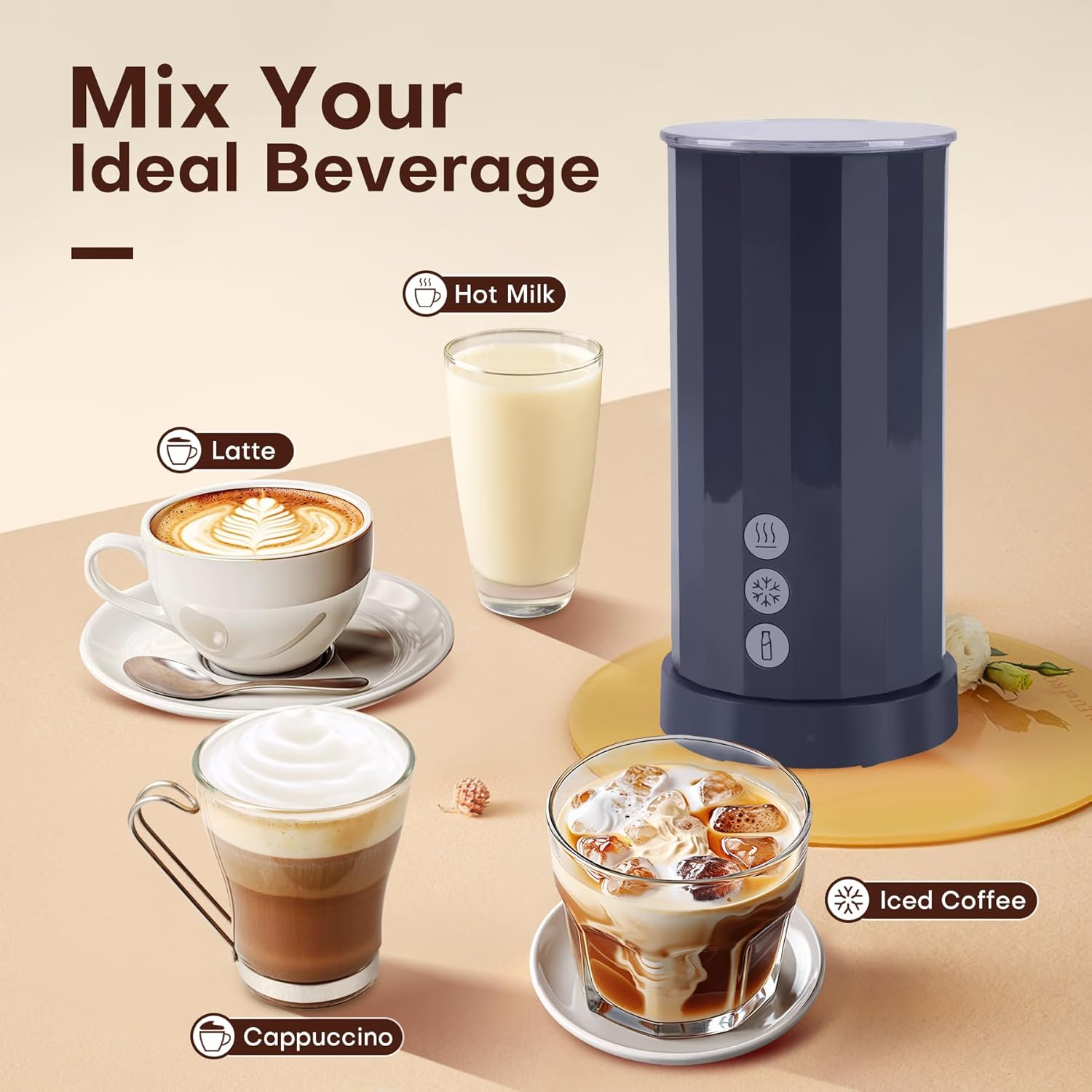 4-in-1 Milk Frother Electric, Milk Frother and Steamer, Hot and Cold Foam Maker and Milk Warmer for Coffee, Lattes, Cappuccino, Macchiatos, Navy Blue