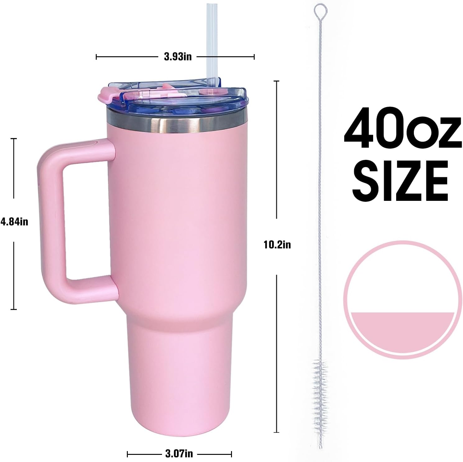40 oz Tumbler with Handle and Straw Lid,Insulated Reusable Stainless Steel Water Bottle Travel Mug,Cupholder Friendly Double Wall Vacuum Sealed Cup (Pink)