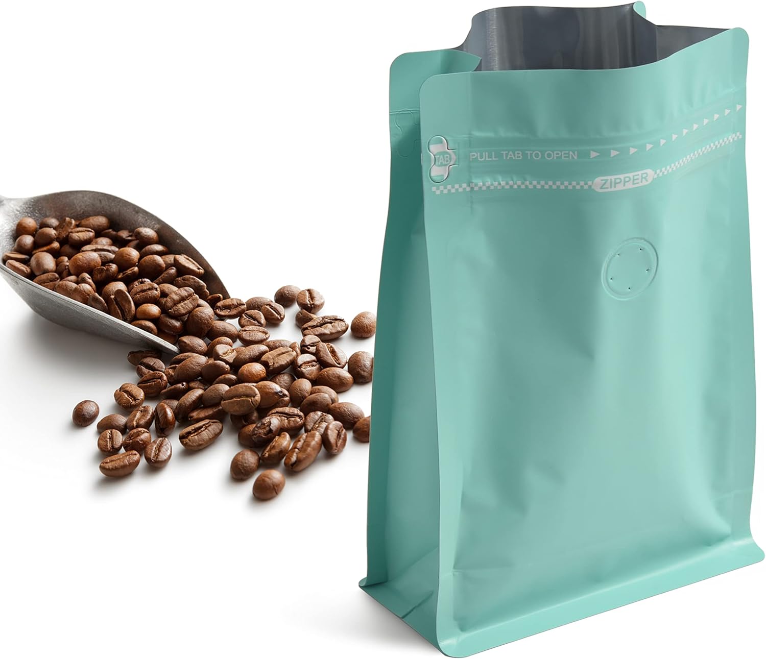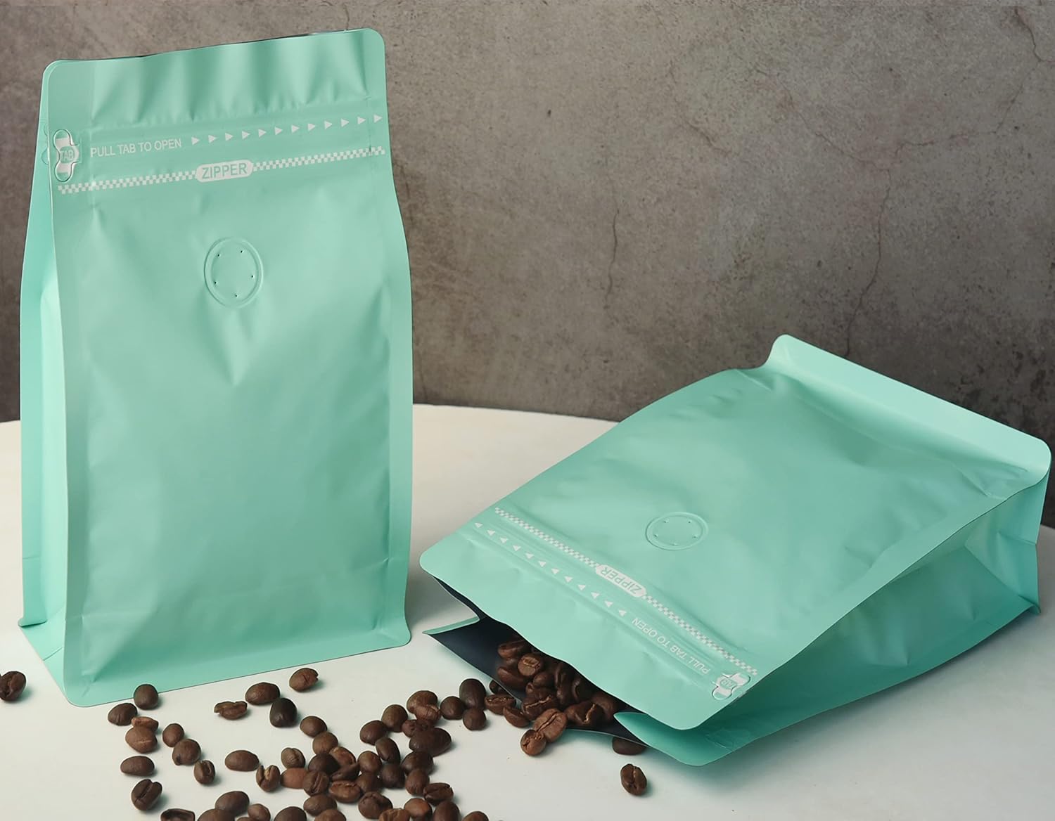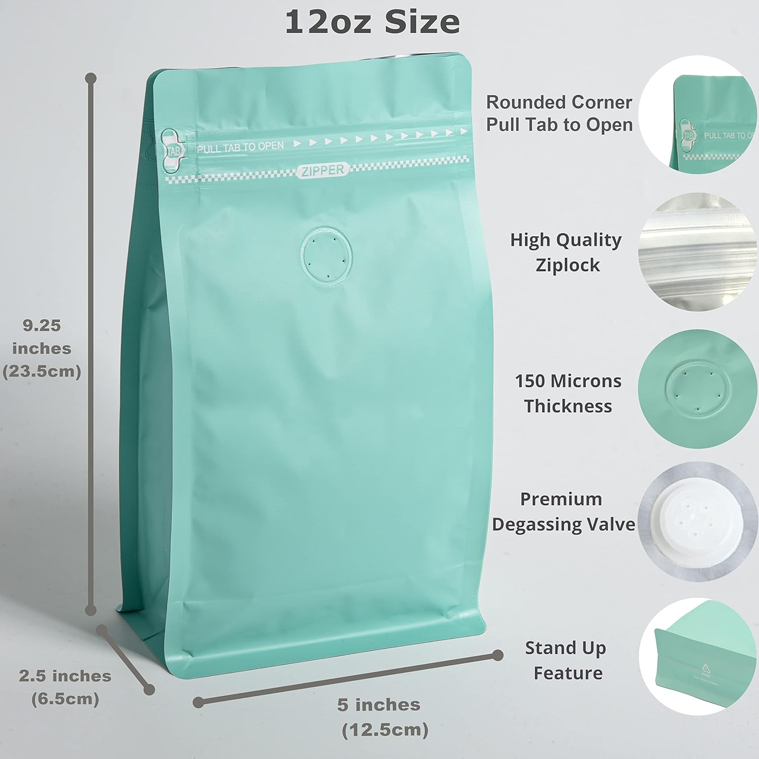 50 Pieces 0.75 LB Blue Green Coffee Bags with Aluminum Foil Liner Pack of 50, High Barrier Coffee Pouches with Degassing Valve, Ziplock Food Storage Bags with Pull Tape, 12oz/0.75lb/340gram