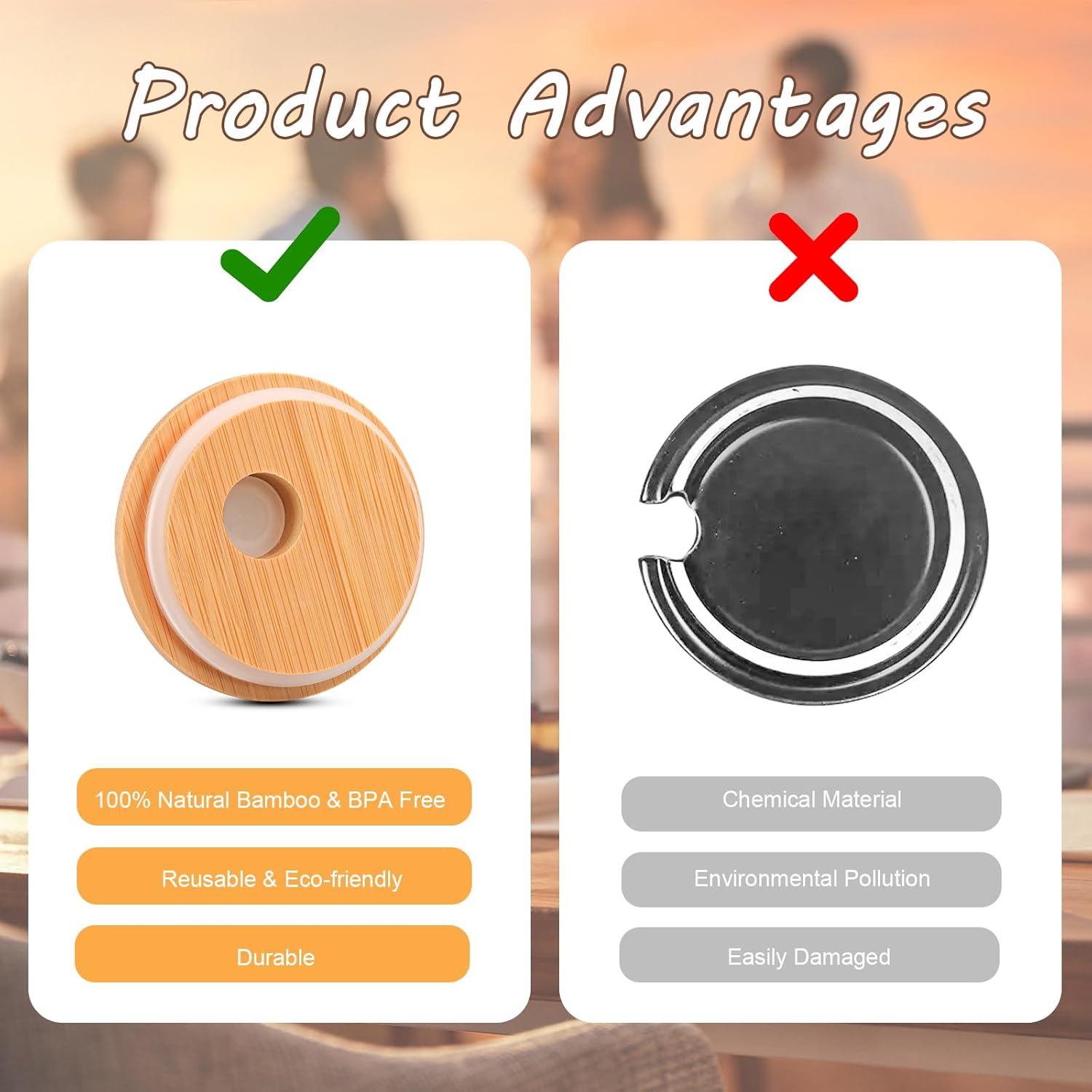 Safe Natural Bamboo Material: The bamboo lids is made of natural bamboo which is eco-friendly, BPA free and safe. Lids for glass cups can keep your family away from harmful chemicals. Lids for cups will not deform and is easy to clean. You can use it for a long time