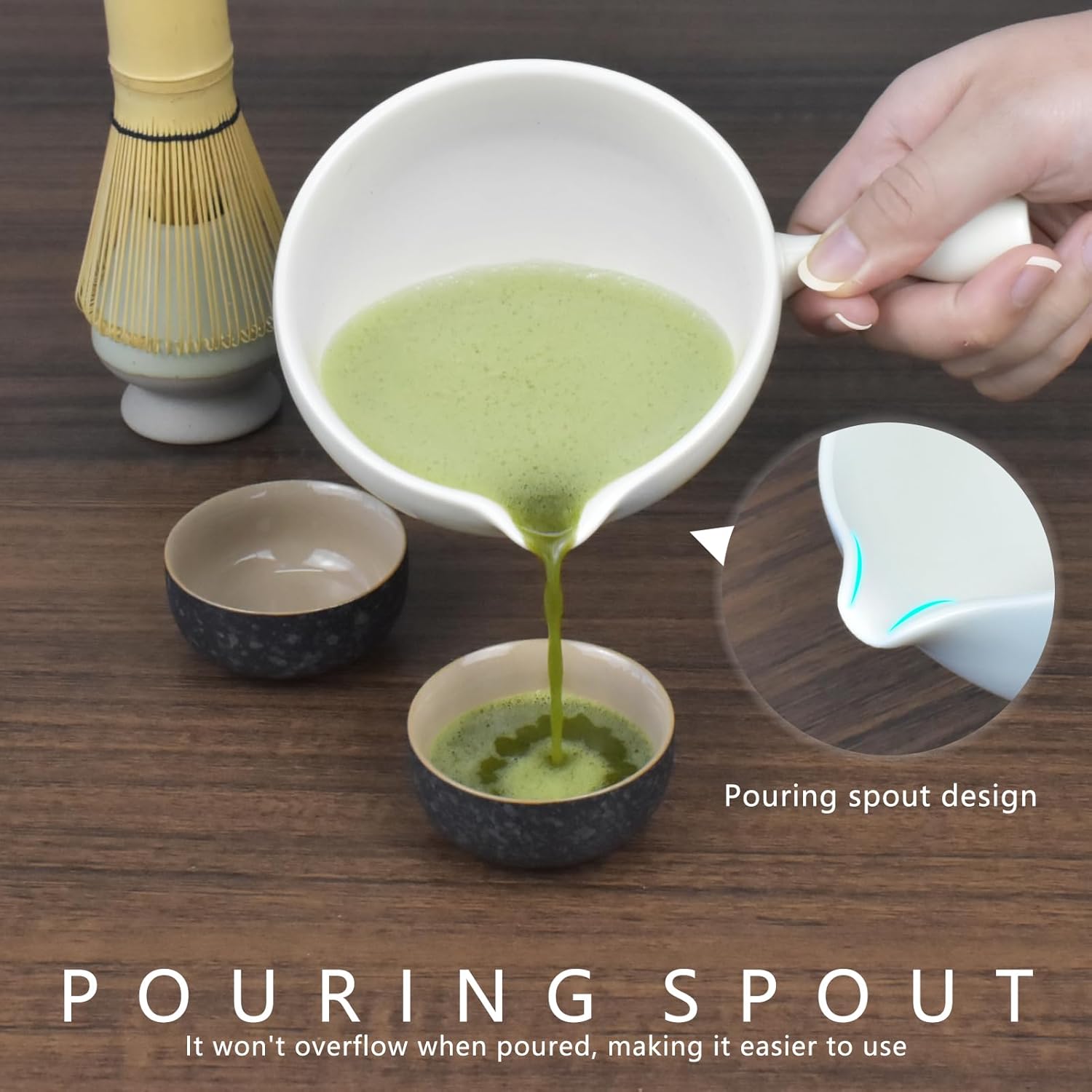 PRECISE POURING with the POURING SPOUT:The pouring spout on our matcha bowl allows for precise pouring, ensuring a smooth and controlled flow of matcha tea. Say goodbye to messy pouring and effortlessly create the perfect cup of matcha.