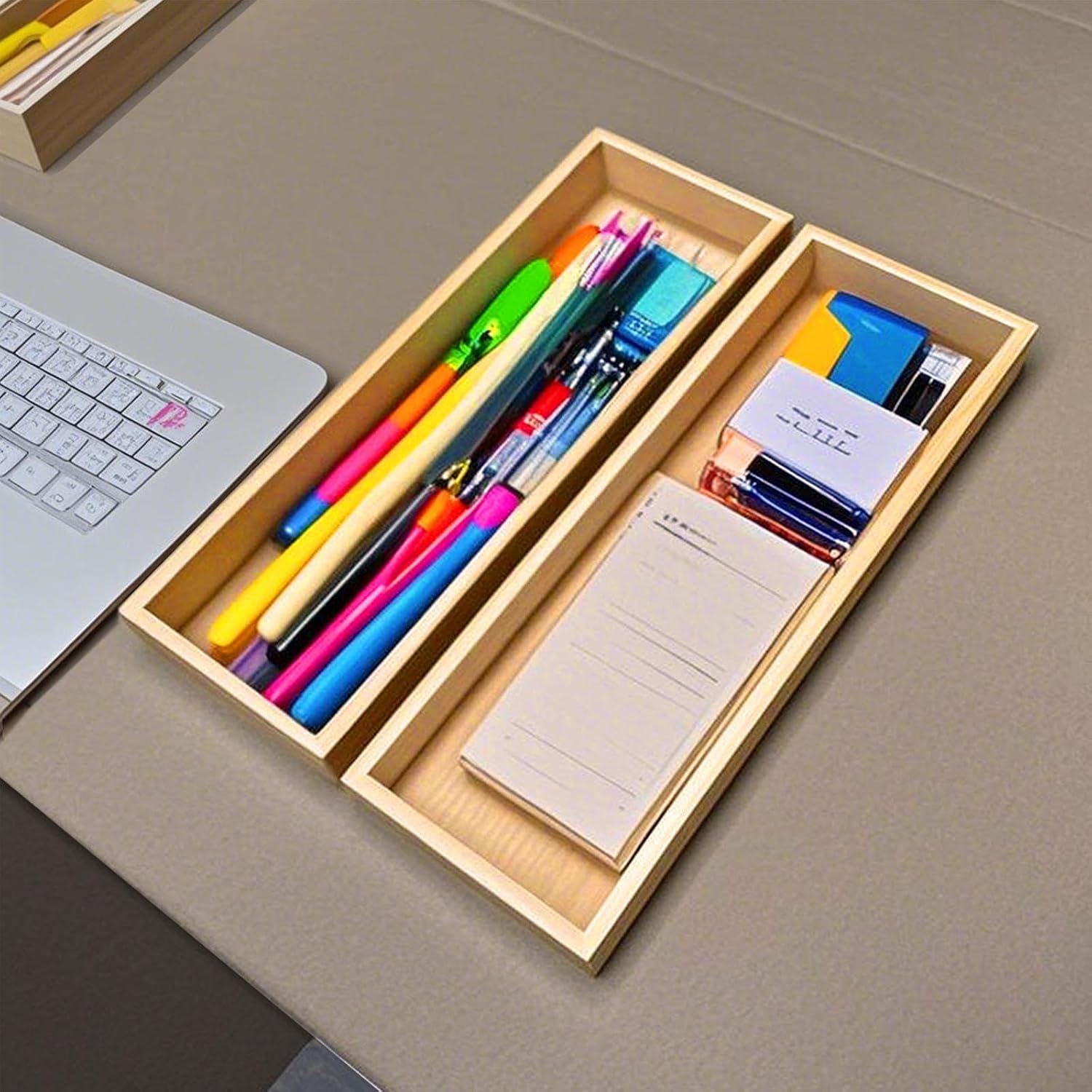 7 reviews for Bamboo Drawer Organizer, Utensil Organizer for Kitchen, Bamboo Storage Box Wood Silverware Tray for Drawer Set of 2