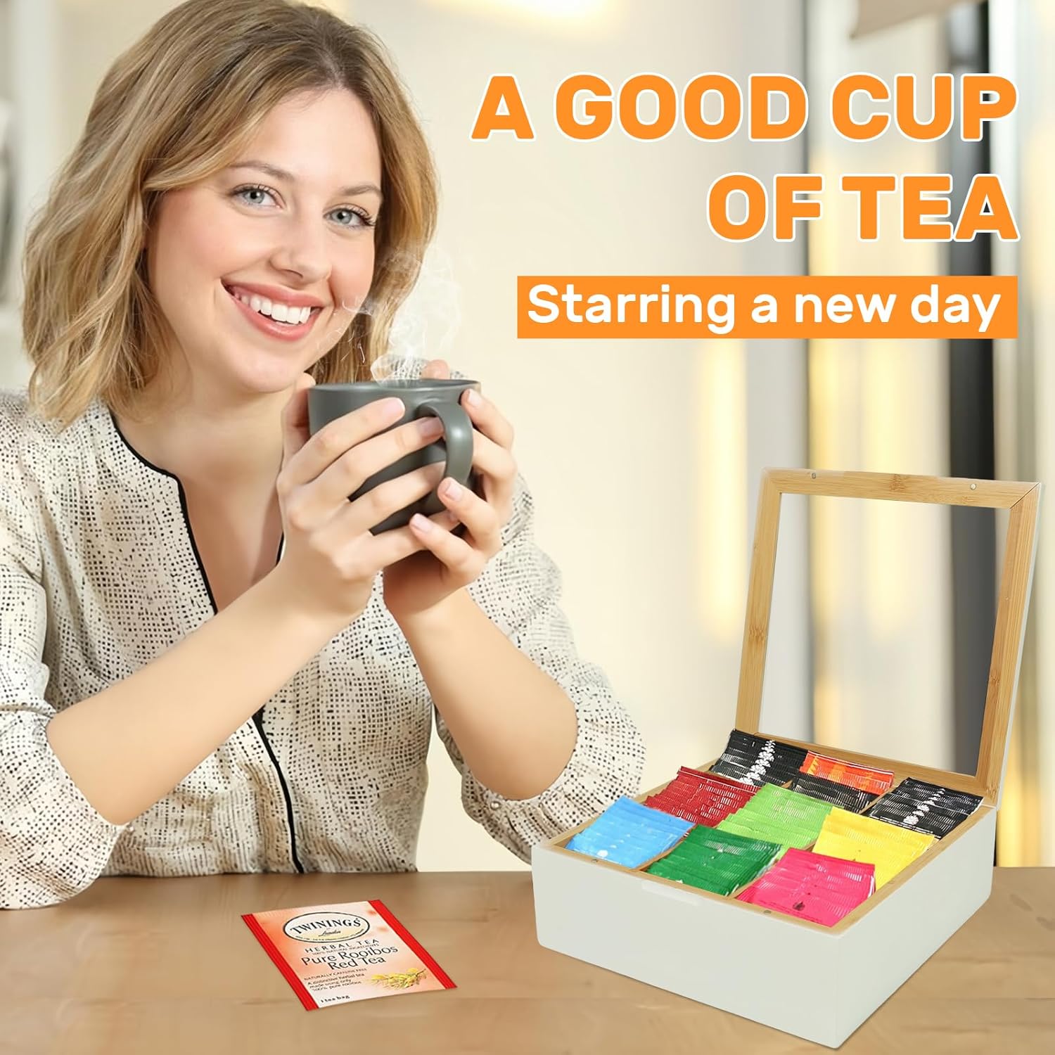 I absolutely love this Bamboo Tea Organizer with a transparent lid! It keeps all my tea bags neatly organized and easily accessible, which has made my tea-drinking experience so much better. The design is not only functional but also aesthetically pleasing, adding a touch of elegance to my kitchen. The transparent lid keeps everything dust-free while allowing me to see my collection at a glance. Itâs the perfect size for fitting in a cabinet or on a countertop. If youâre a tea lover looking for an efficient way to store your tea, this organizer is a must-have!