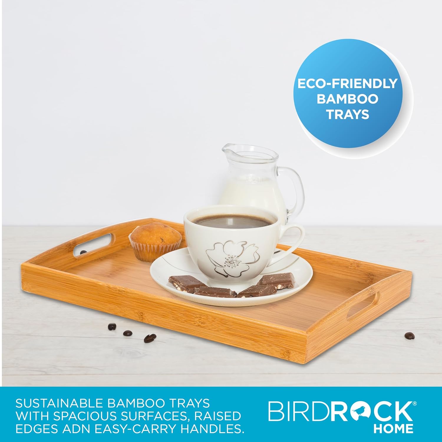 BirdRock Home 3 pc Breakfast Bed Tray (Rounded) – Bamboo – Cut Out Handles – Set of 3 – Bamboo – Nesting