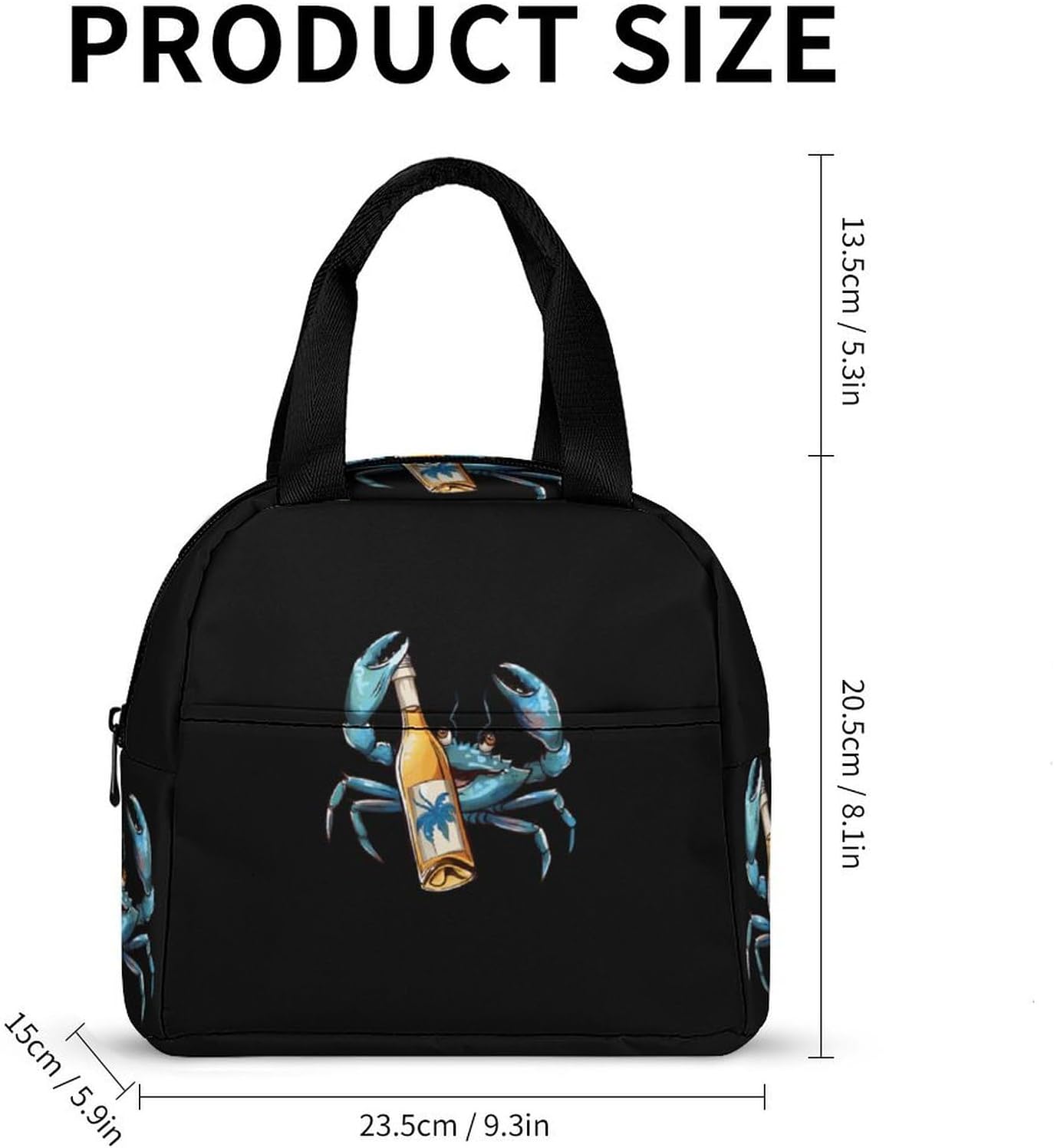 Blue Brew Crab Lunch Bag Insulated Lunch Box Reusable Lunch Tote Bag Cooler Cooling Tote for Travel Work