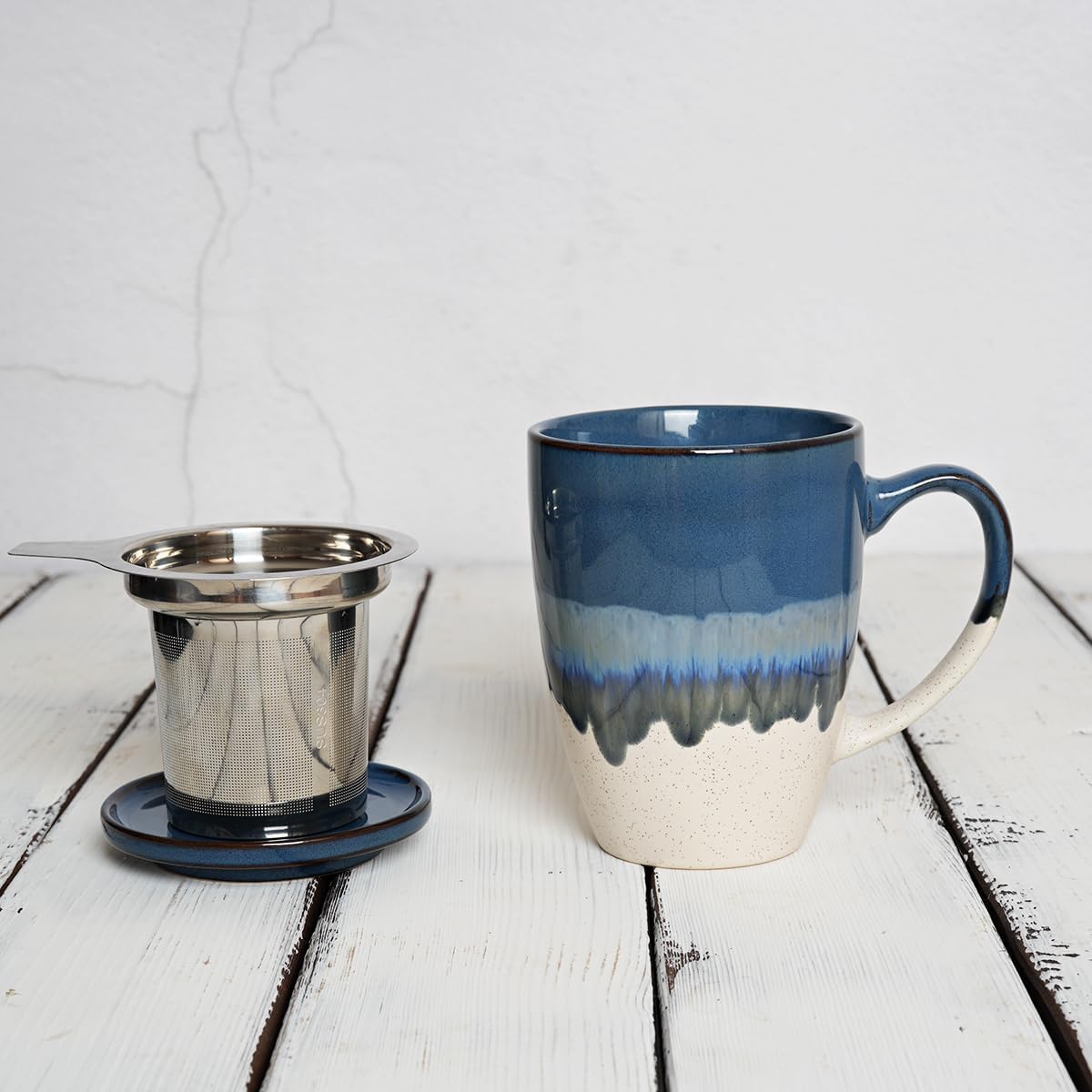 8 reviews for Bosmarlin Ceramic Tea Cup with Infuser and Lid, 13.5 Oz, 5 Colors to Choose, Dishwasher and Microwave Safe, Steeping Tea Mug with Strainer, Reactive Glaze (Deep Blue)