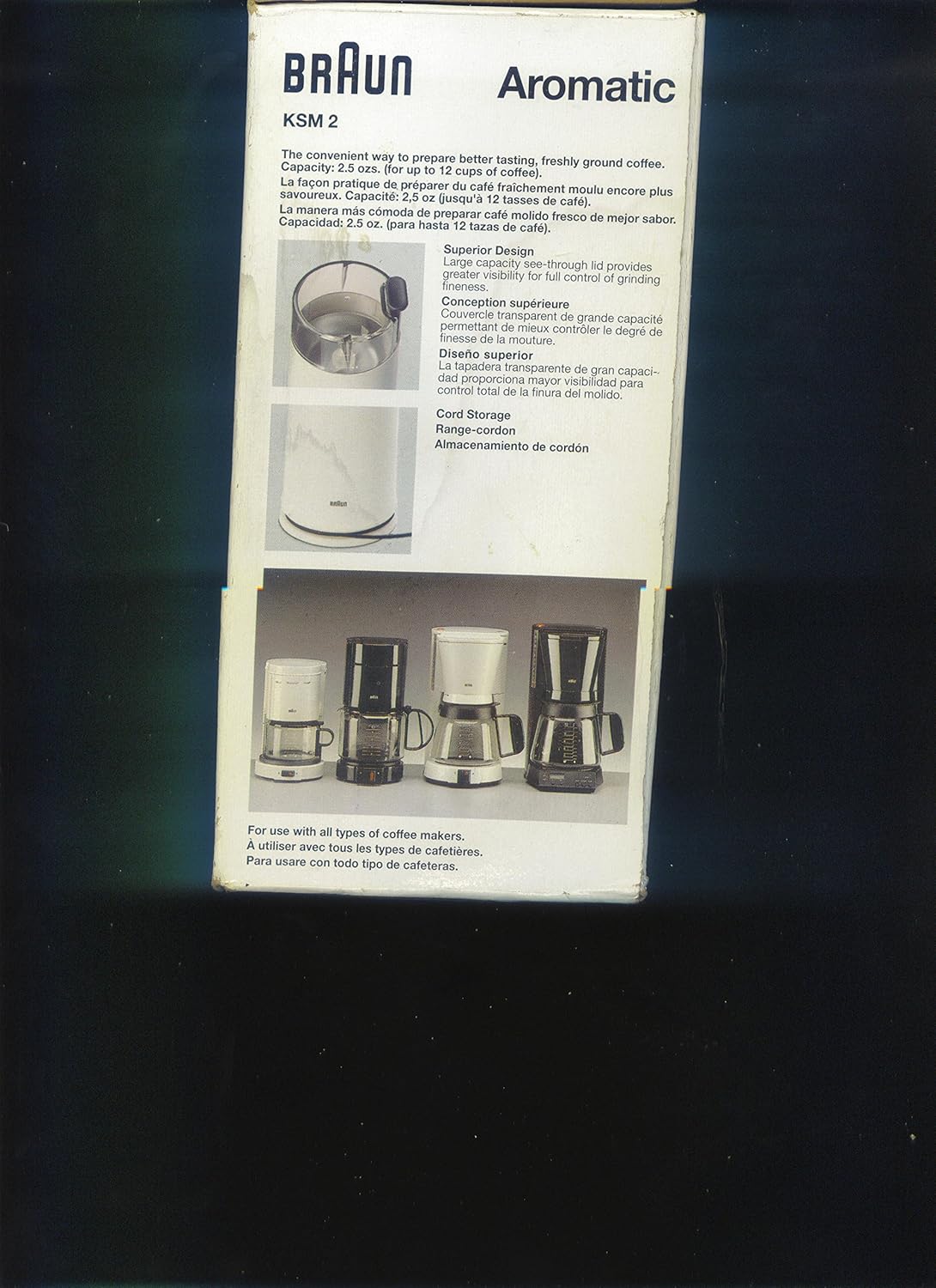 My last coffee grinder was the Braun. It had to be 30 yrs old. I broke it accidentally. My daughter bought me a Krups. I burned that out in a week. It took 60 seconds to grind the beans where my krups took 16 secs. I was so happy to find a Braun again, same exact grinder!