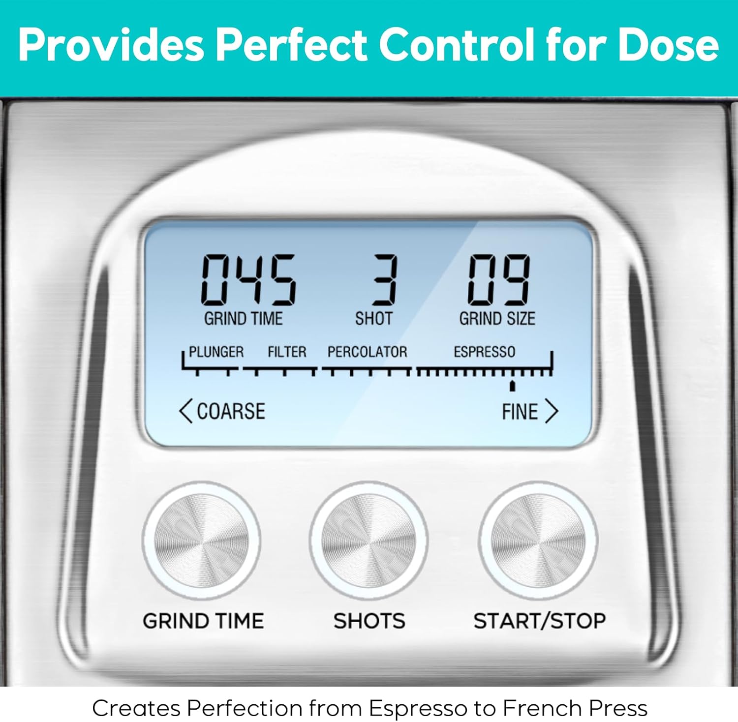 Grind Size Dial ensures grind size precision from the finest Espresso to the coarsest French Press