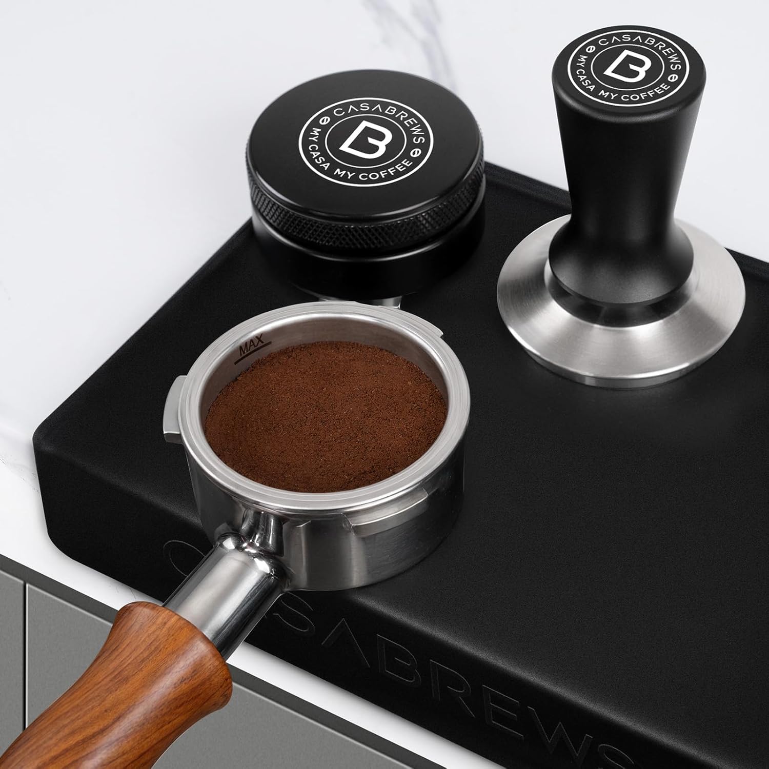 This CASABREWS tamping mat is a great addition to my espresso setup. Its size is perfect, providing ample space for all my espresso tools, including the tamper, distributor, and portafilter. The mat is also very heavy and thick, which ensures that it stays in place and does not slip during use. I particularly appreciate that it works well with my bottomless portafilter and is easy to clean.Overall, I recommend this tamping mat for anyone looking to complete their espresso space.