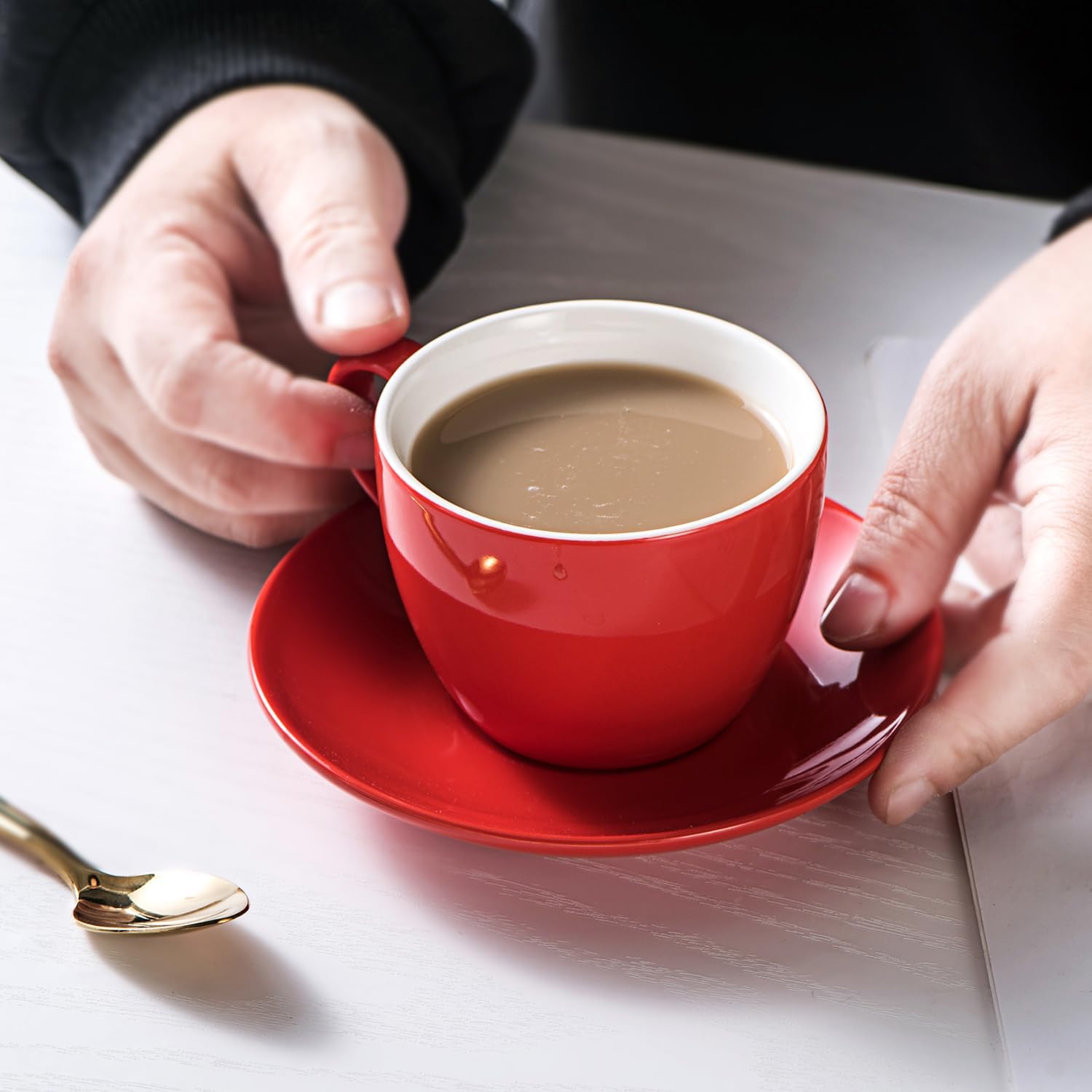 These coffee cups are a delightful addition to any kitchen! With their 6-ounce capacity and 5-inch saucers, they’re perfectly sized for a variety of beverages, from cappuccinos to tea. The set comes in six vibrant colors, adding a stylish touch to your coffee moments. Made from high-quality ceramic, these cups are both durable and non-toxic, free from lead and cadmium. The ergonomic handle ensures a comfortable grip, and the smooth, glazed surface makes cleaning a breeze. Whether you’re enjoying a morning espresso or a relaxing tea, this set combines functionality with a chic design. Highly recommended! â