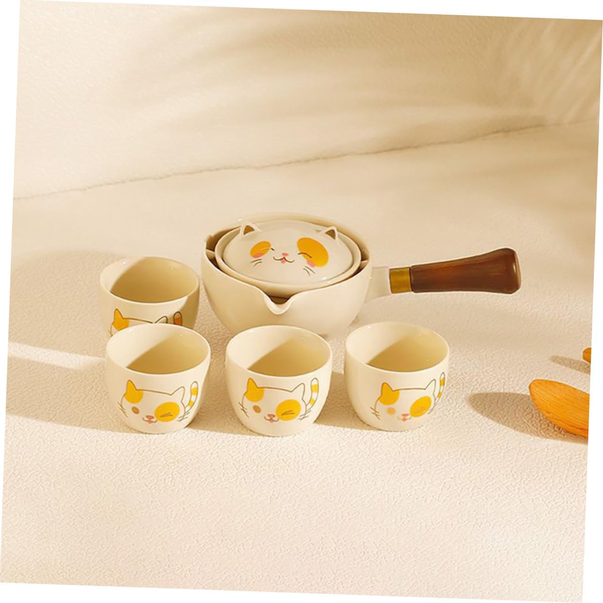 -Material:Ceramic, bamboo, wood Tea Brewing Set