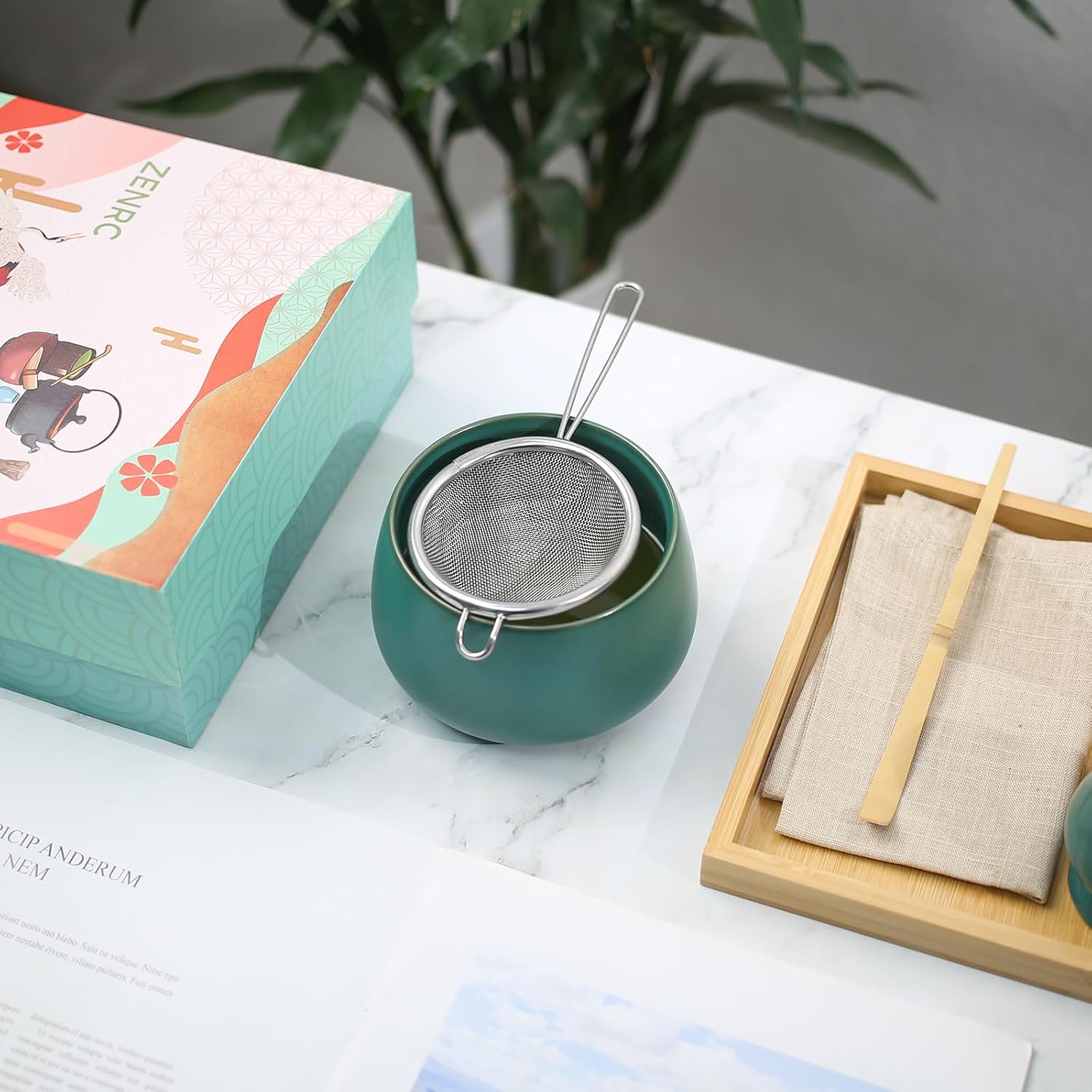 The ZENRC Ceremony Matcha Kit is stunning from the outside to the inside of the box. The box itself is beautiful and has incredible Asian vibes, making you excited to see what is inside. The Macha cup is the first thing you notice when you remove the lid and bamboo tray – it’s perfect in size, and the jade color is inviting. Every item is packed securely in its designated place. While I unpacked, I set everything up to make a cup of Macha, and everything fit nicely onto the tray without crowding. I like the addition of the strainer for the Macha powder, but I would have preferred a more authentic bamboo strainer, keeping with the “feel” of the set. If I had a complaint, that would be the worst I would have, and is it a big deal – no. This set is stunningly beautiful and would make a GREAT gift for any Macha drinker – be it a friend or for yourself.