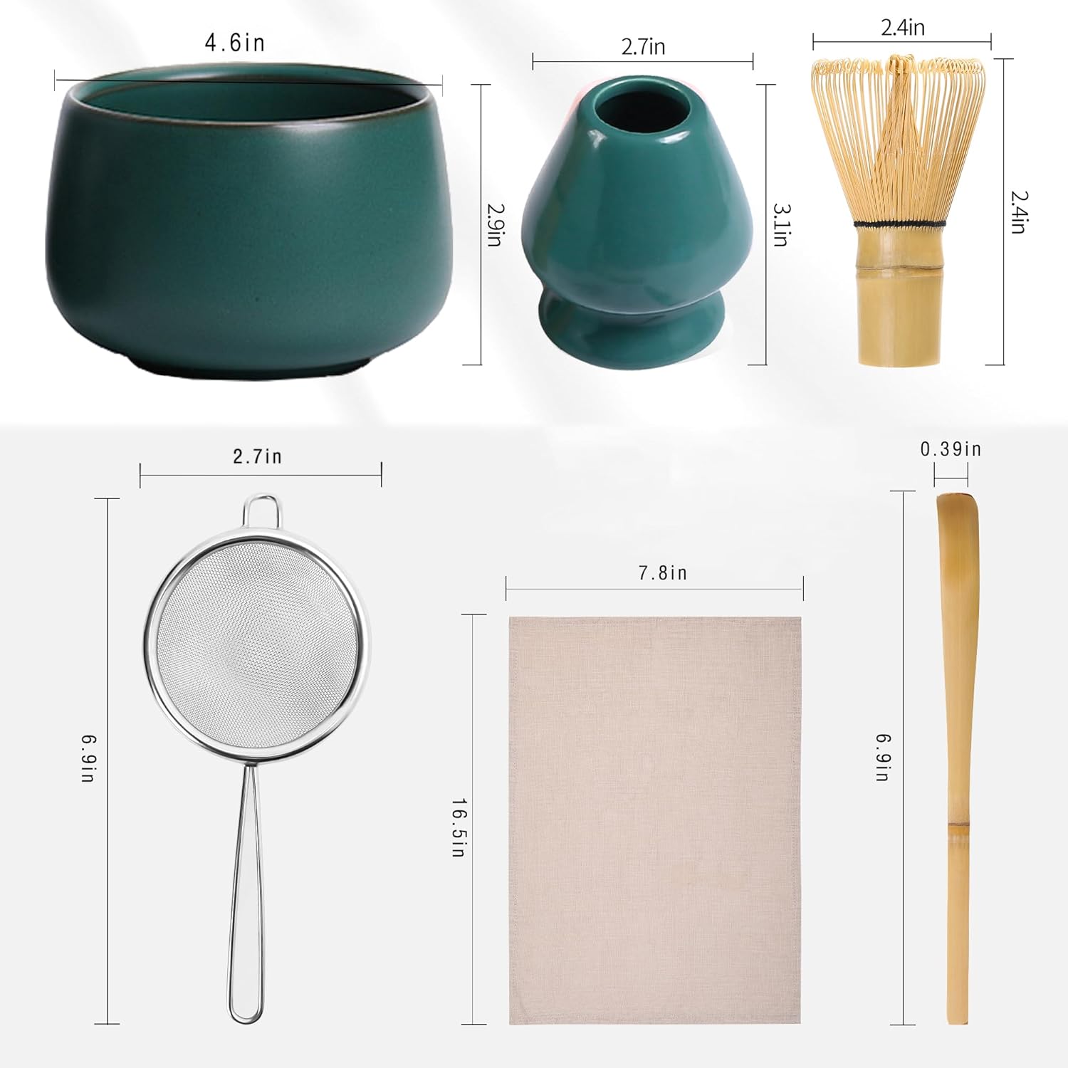 ★6/PC Matcha Whisk Bowl and Whisk Set – Provides Matcha lovers the essential matcha accessories to make a traditional bowl of ceremonial matcha at home and anywhere, Every unit include a Japanese matcha bowl, a handmade bamboo matcha whisk (chasen), a classic bamboo matcha scoop ( chashaku ) , a whisker holder ( reshaper), an ultra-fine stainless steel matcha sifter and a tea towel