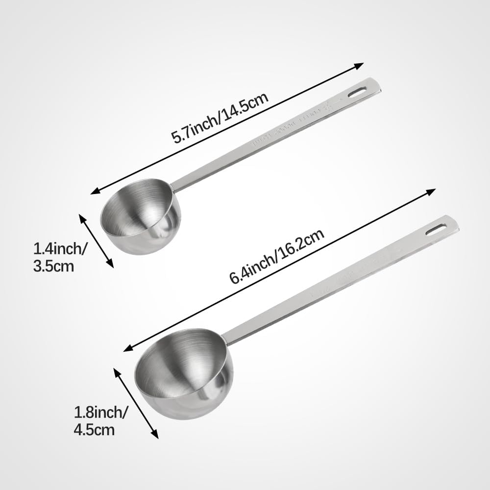 Accurate Measurement: Stainless steel coffee measuring spoons ensure precise measurements and are available in 2 tablespoons (30 ml) and 2 tablespoons (15 ml) for consistent consistency and flavor every time you brew your drinks.