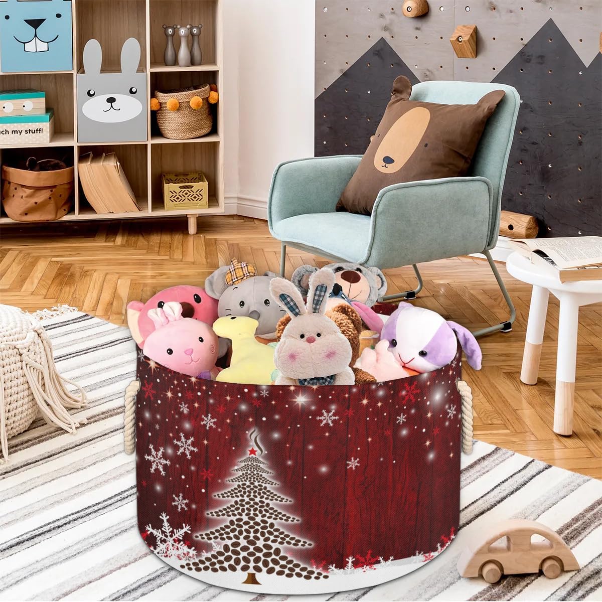 【DECORATIVE MULTI-PURPOSE TOY BASKETS】The red tree coffee beans decor storage box can be filled with various items,used in every position for bathroom,laundry room,nursery,children’s room,toy room,playroom,bedroom,toilet,living room,cloakroom,and kitchen.