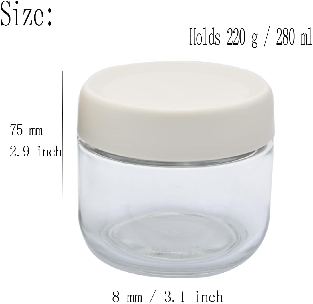 Coffee Canister Travel Jar, Mini Airtight Glass Food Storage Container Holds 220g/280ml, Keep Fresh and Dry for Coffee Bean Nuts Sugar, White Set of 2