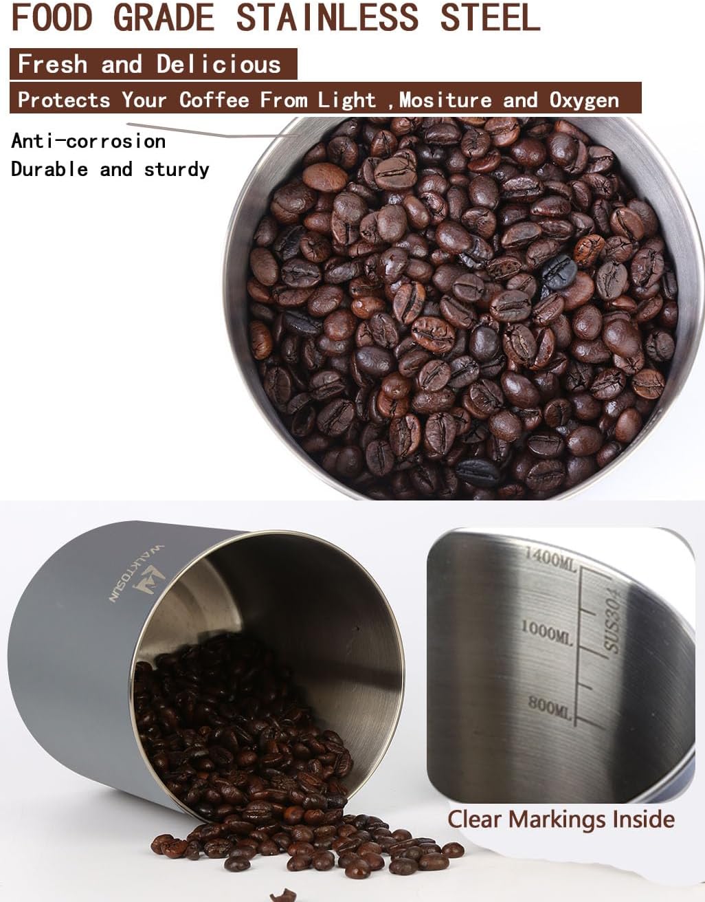 【Various Purpose】Beside coffee grounds and coffee beans, this storage container jar is also suitable all kinds of ingredients such as sugar, flour, nuts, tea, rice and snacks, it will keep light, sunlight, heat and moisture away from your ingredients.