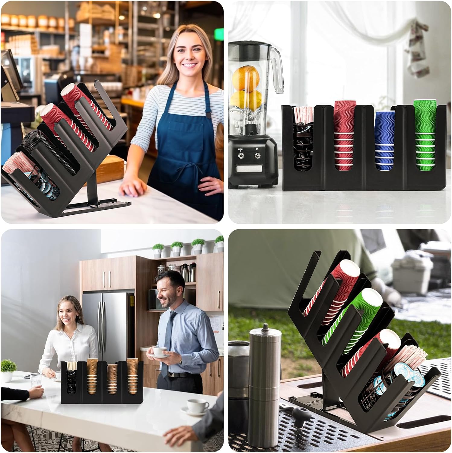 【Widely Versatile】This coffee bar organizer is an ideal solution for organizing cups and lids in offices, coffee breakrooms, bars, buffets, restaurants, bathrooms, hotel lobbies, home countertops, dorm rooms, and more.Its versatility as a coffee cup organizer enhances any space