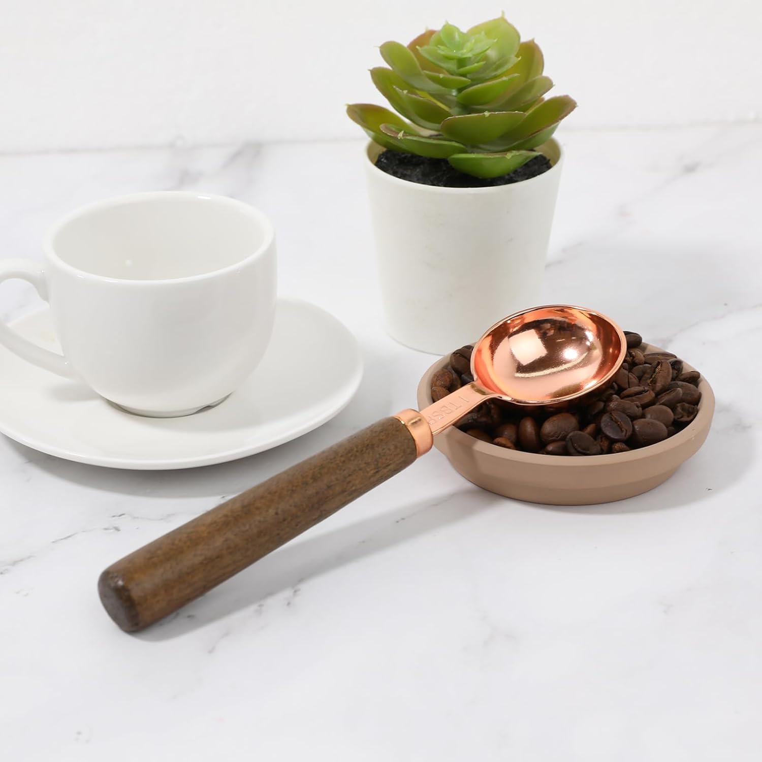 Coffee Scoop for Coffee Beans 1PCS 15 ml Ground Coffee Scoop 1 Tablespoon Coffee Measuring Spoon Wood Long Handle Rose Gold Coffee Bean Scoop (6.7 Inch)