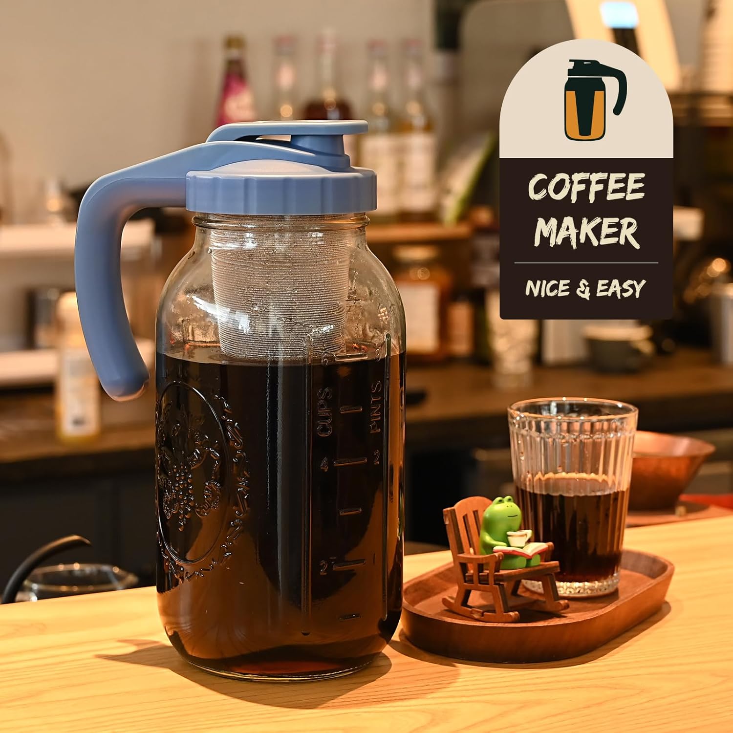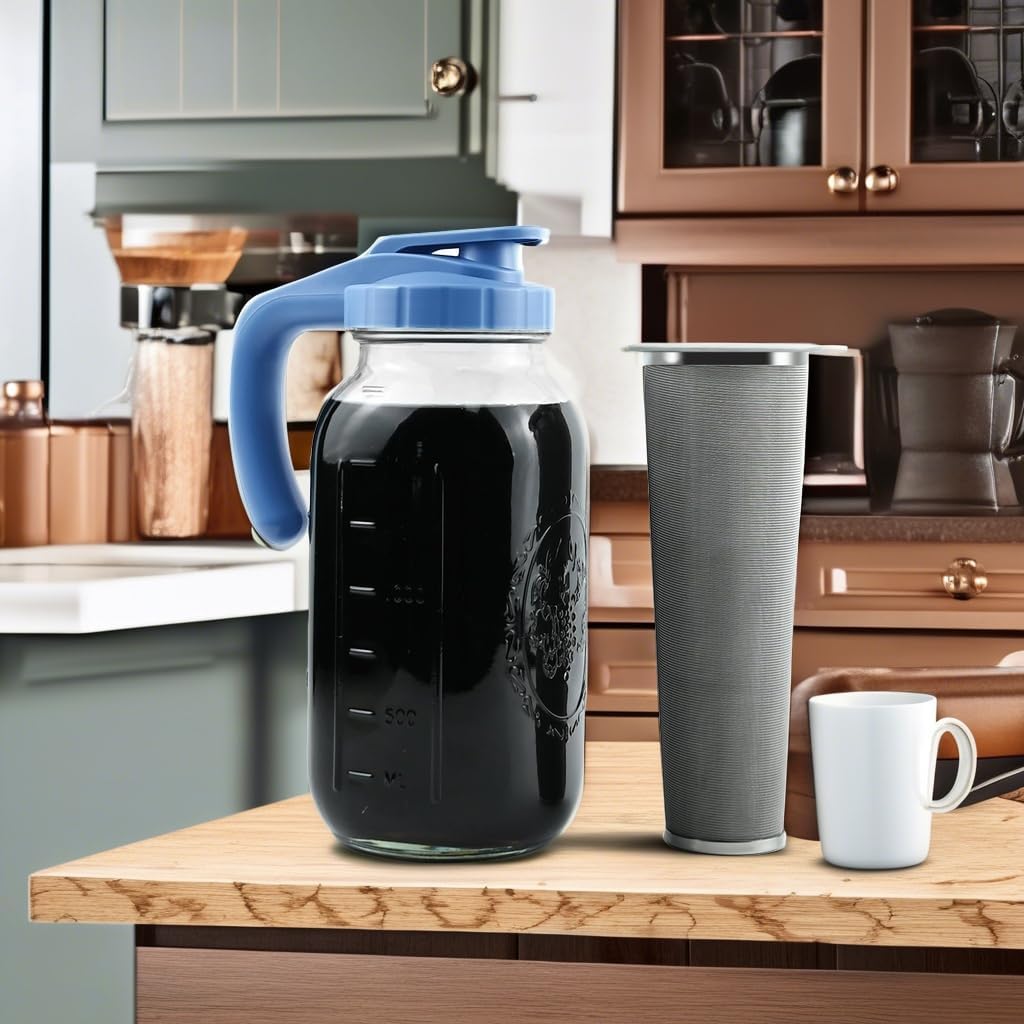 Cold Brew Pitcher: Simply add coffee, steep overnight, and enjoy fresh cold brew straight from the pitcher. The mason jars coffee maker easy to clean and dishwasher safe