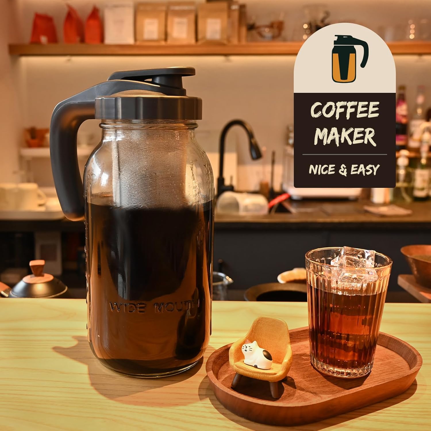 Cold Brew Pitcher: Simply add coffee, steep overnight, and enjoy fresh cold brew straight from the pitcher. The mason jars coffee maker easy to clean and dishwasher safe