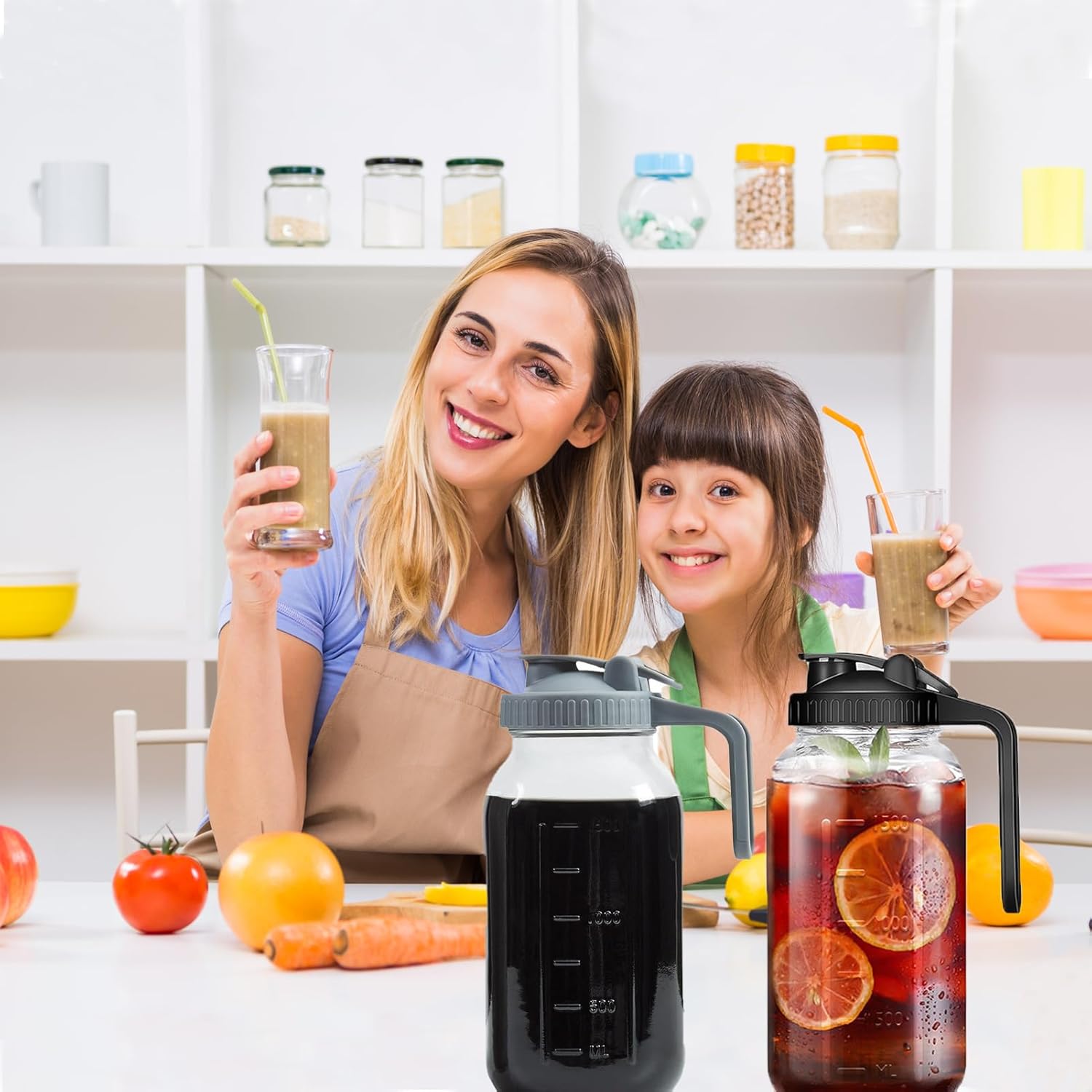 2 reviews for Cold Brew Coffee Maker Pitcher, 64 oz Wide Mouth Mason Jar Pitcher with Stainless Steel Filter, Heavy Duty Glass Airtight & Leak-Proof Pitcher for Iced Coffee, Ice Lemonade, Fruit Drinks, Sun Tea
