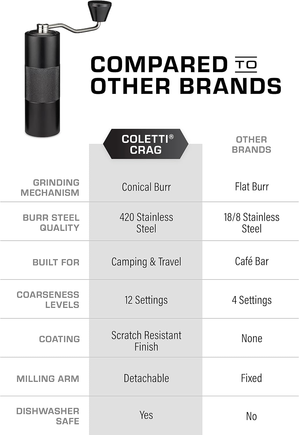 COMBAT TOUGH: No coffee grinder has ever been built this rugged. COLETTI brings coffee to camping and adventure to your morning brew. We believe you can make camping coffee anywhere in the world