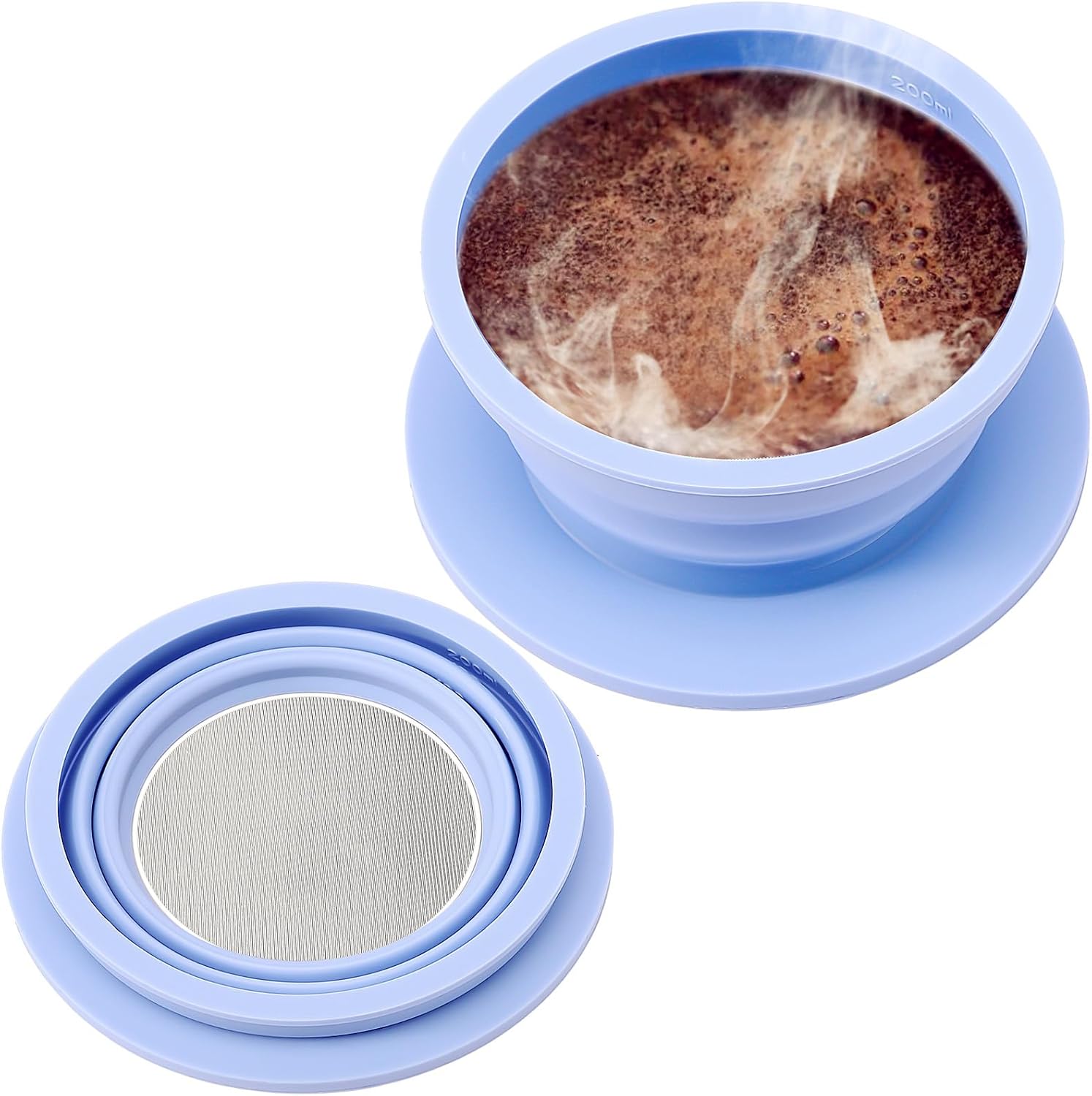 [Paperless and Reusable] The collapsible travel pour over coffee maker is specifically designed to reuse with fine stainless steel mesh screen, eliminating the need for filter paper, saving money and reducing unnecessary waste. Now say goodbye to the hassle of using filter paper and enjoy the authentic taste of coffee