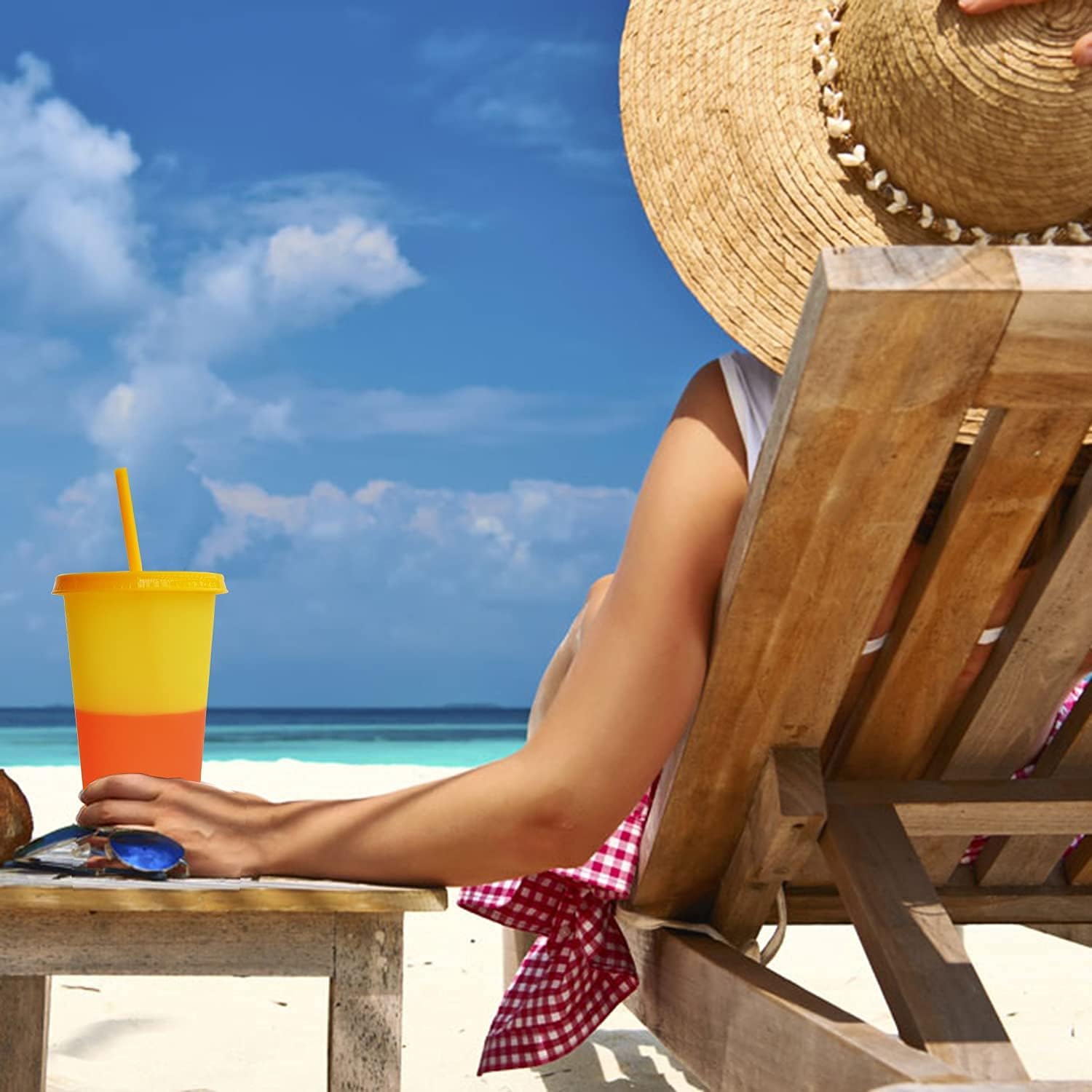 5 PACK 24oz COLOR CHANGING CUPS WITH LIDS AND STRAWS