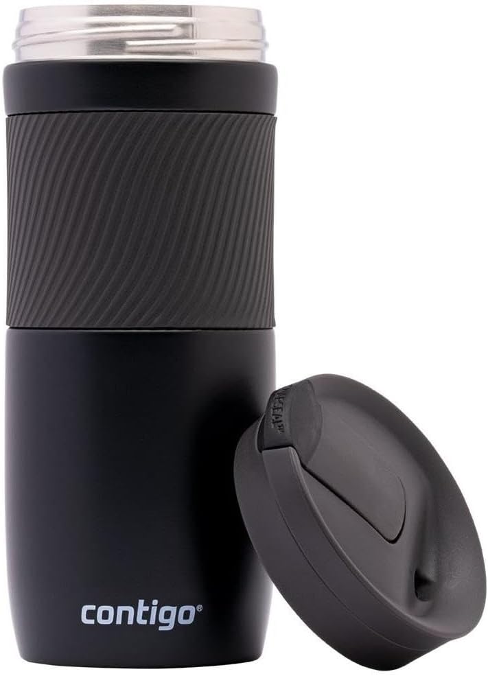 Contigo Byron Snapseal Travel Mug, Stainless Steel Thermal Mug, Vacuum Flask, Leakproof Tumbler, Coffee Mug with BPA Free Easy-Clean Lid, 470 ml, Matte Black