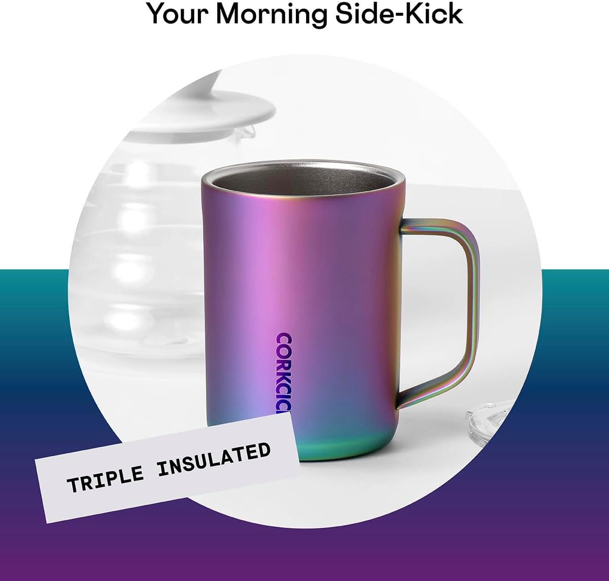Whether you’re enjoying your morning tea or looking for an afternoon caffeine pick me up, the Corkcicle 16 oz Travel Coffee Mug makes every day something to celebrate. The triple insulated coffee mug with handle keeps beverages hot for up to 3 hours. This portable coffee mug features flat sides for an easy-grip. Don’t worry about spills with this spill proof tumbler. The thermal mug has a stay-put silicone bottom that prevents the tumbler from sliding and spilling. The commuter coffee mug has a shatter-proof lid that will last drink after drink. BPA-free and made of stainless-steel, the hot coffee travel mug is perfect for campers, commuters, travelers, or anyone who enjoys hot beverages on-the-go! The stylish color of the tea mug adds a pop of fun, no matter where you are. The tea mug with lid will hold 16oz of your favorite drink. Plus, the stainless steel coffee mug is easy to hand wash clean! At Corkcicle, our mission is to make every sip an experience. Our products are completely reusable, so you can feel good about making them a part of your everyday. Whatever the occasion calls for, Corkcicle keeps the good times flowing.