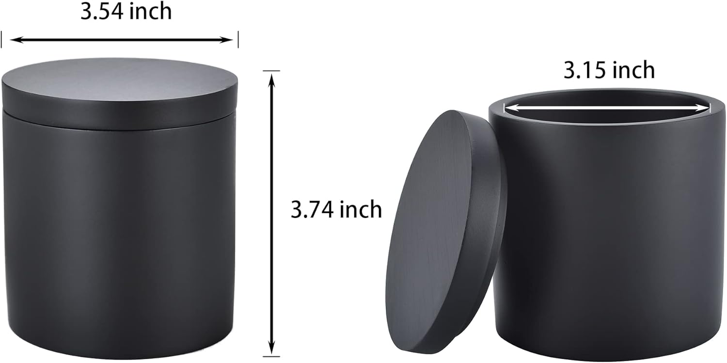 Cotton Swab Holder with Lid, Round Qtip Holder Bathroom Black, Resin Cotton Ball Canister Jar Cosmetics Makeup Countertop Organizer Containers Canister Apothecary Jar, Matte Black