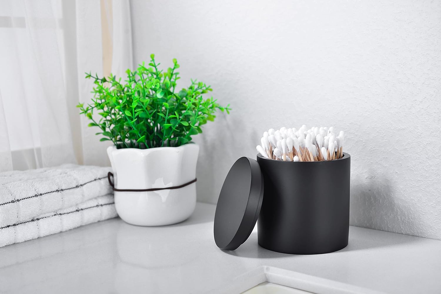 Package Included:1 matte black qtips holder
